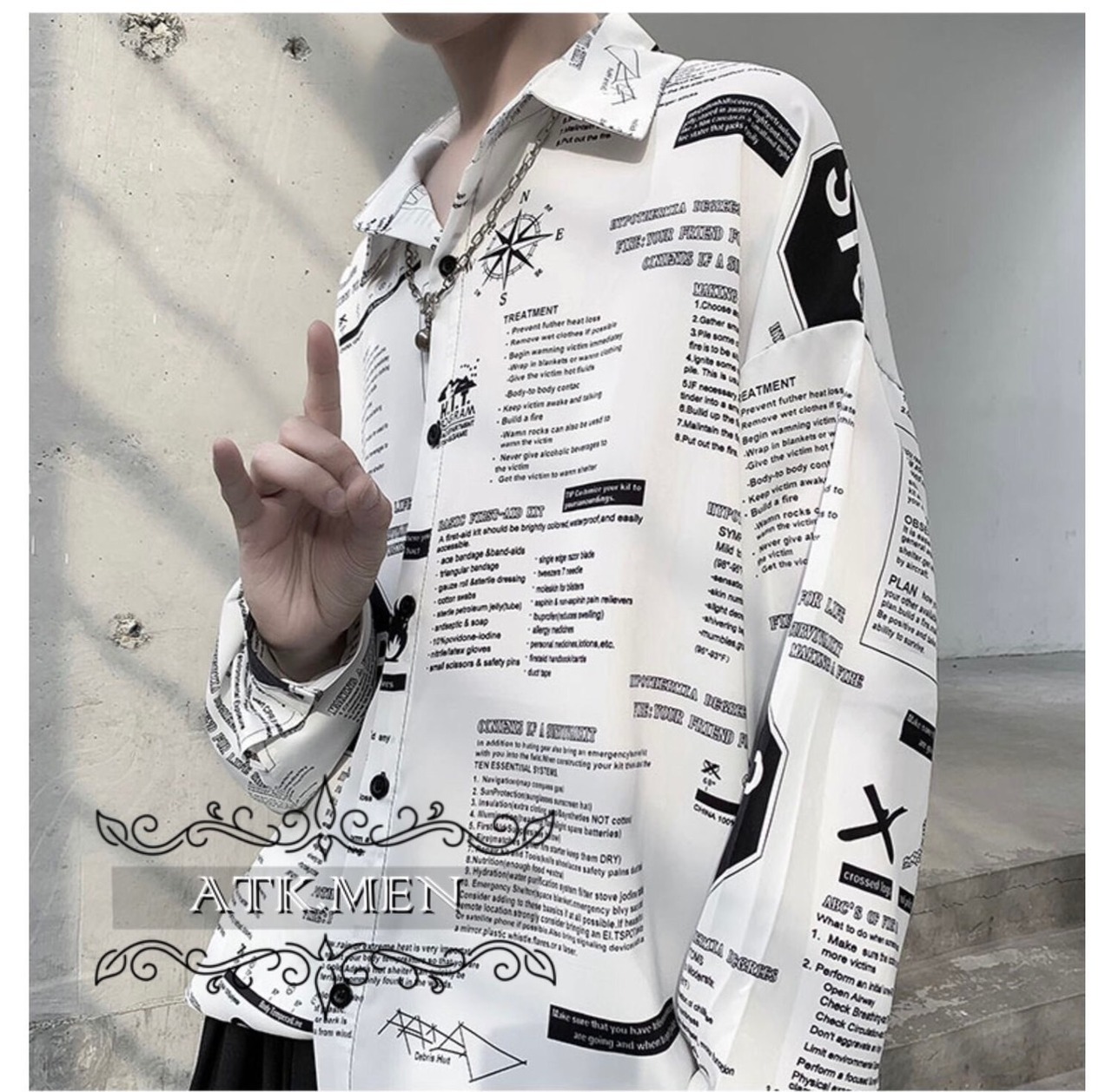 【ATK.MEN】 I64 韓国風 かっこいい シャツ 文字 渋谷 個性 派手 クール 柄 ワイルド 派手 メンズ オルチャン オシャレ