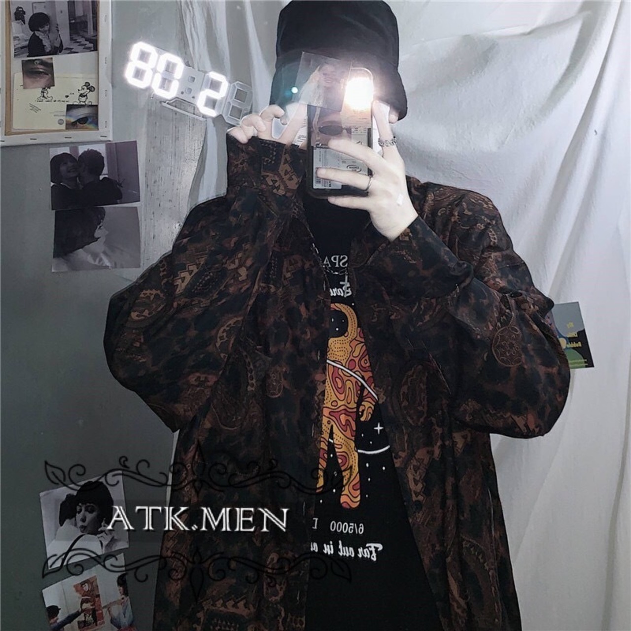 【ATK.MEN】 I55 芸術風 グレー 黒 ブラウン 茶色 柄 ビンテージ クラシック風 ホスト風 ワイルド ダンス