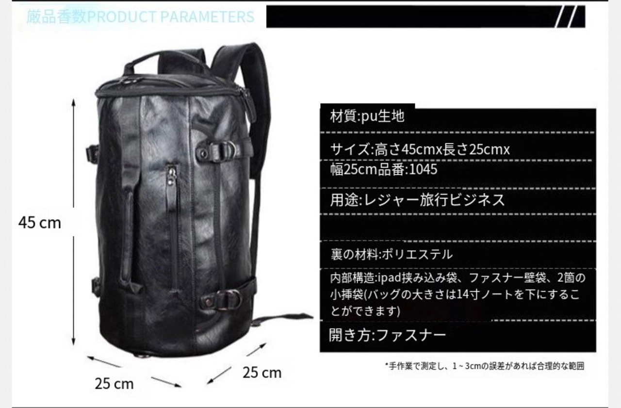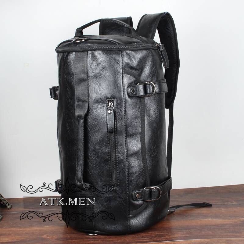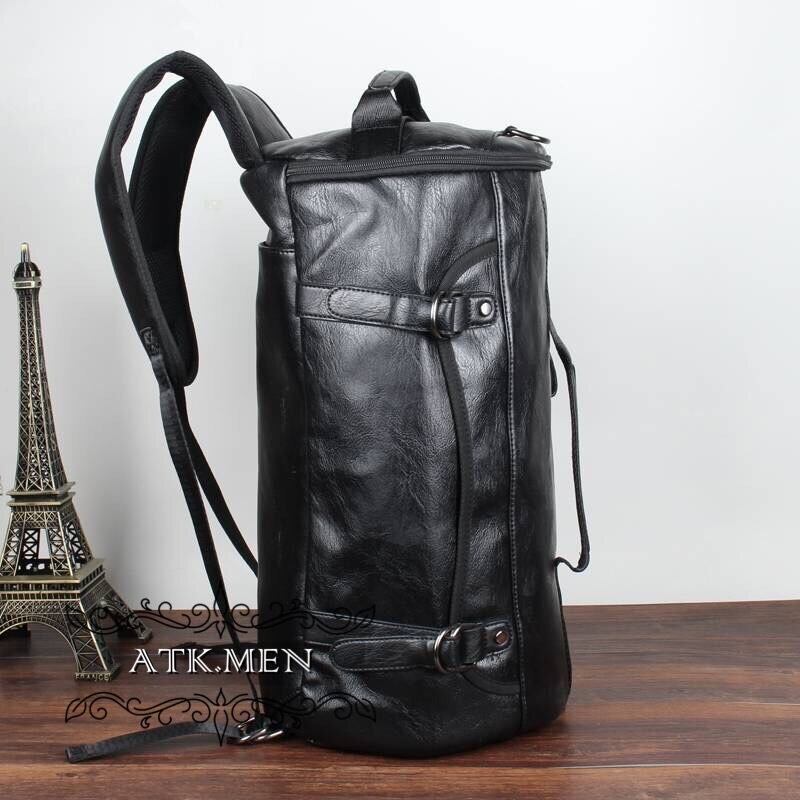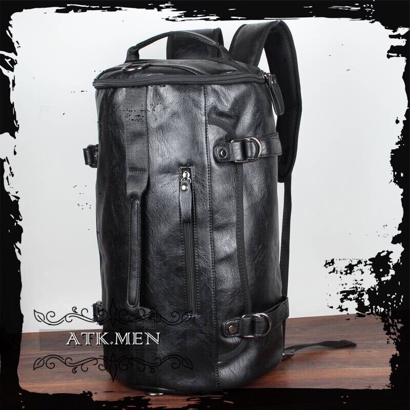 【ATK.MEN】 I42 メンズ 革製 円筒状 バック 大容量 オシャレ 個性 韓国 原宿 黒 カバン
