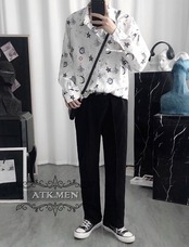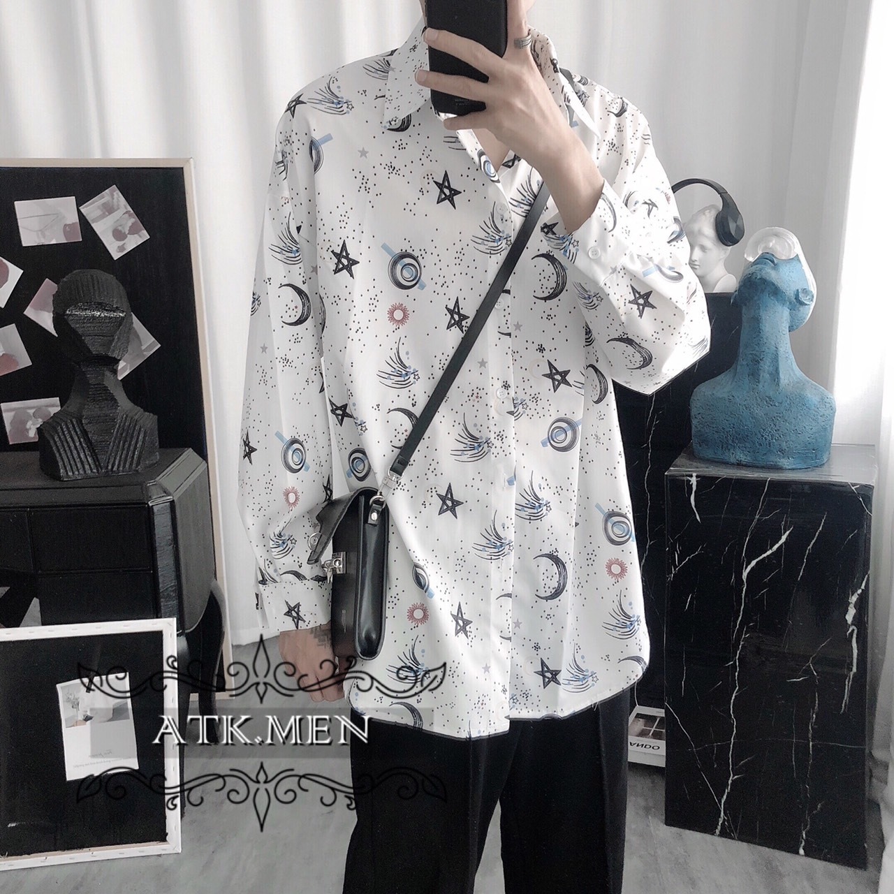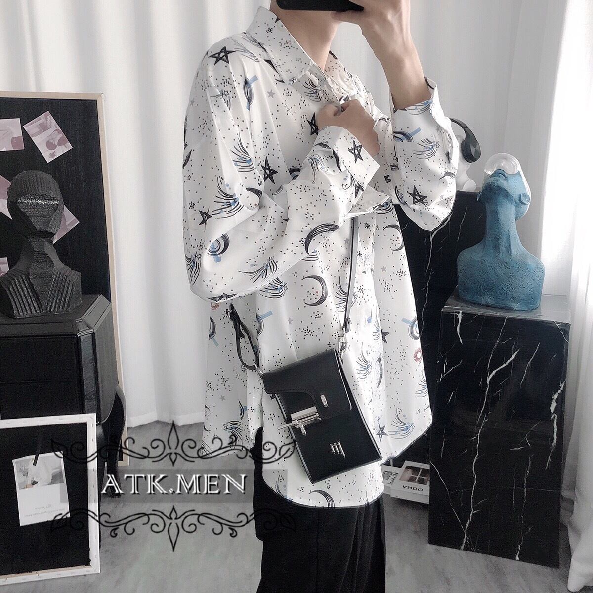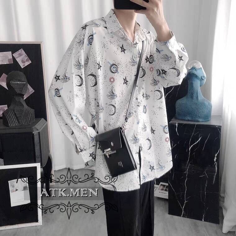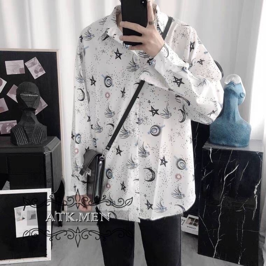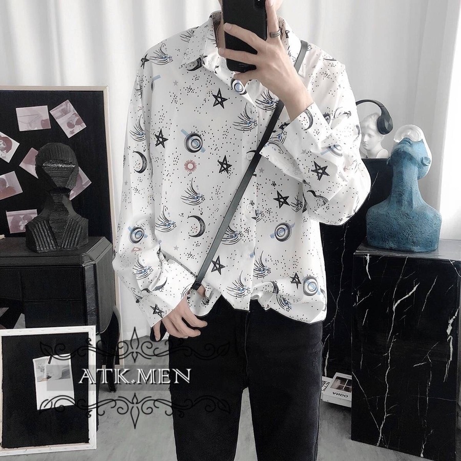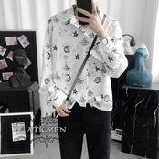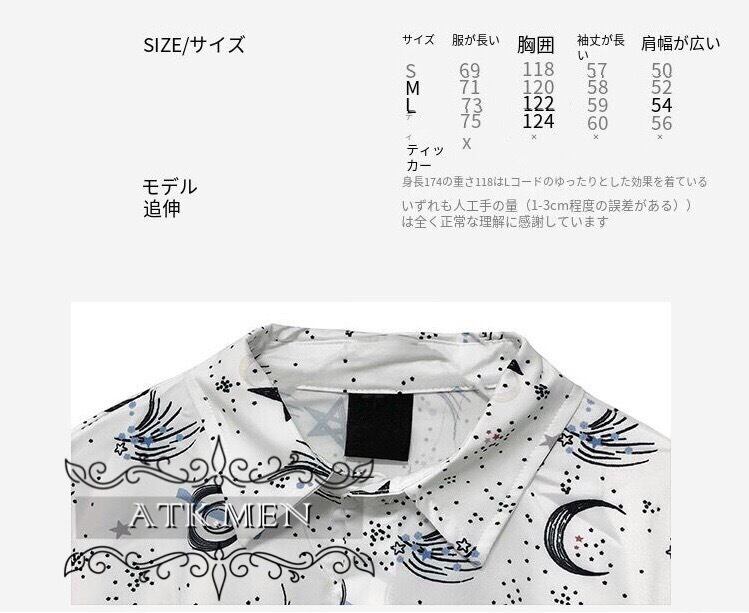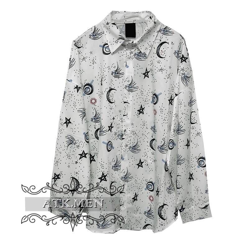 【ATK.MEN】 I31 白 星空 オシャレ 柄シャツ 長袖 芸術風 デート カジュアル 原宿 王子風