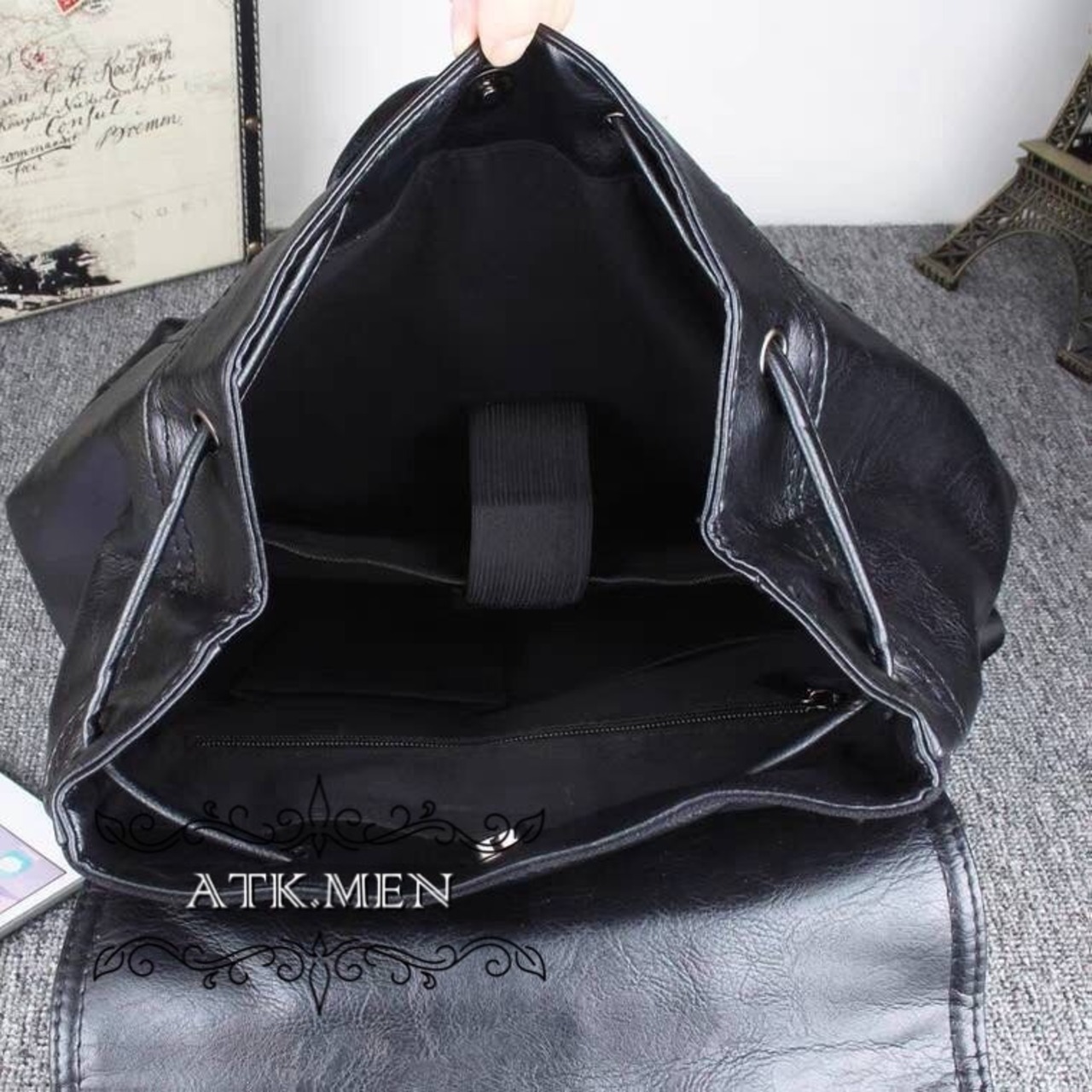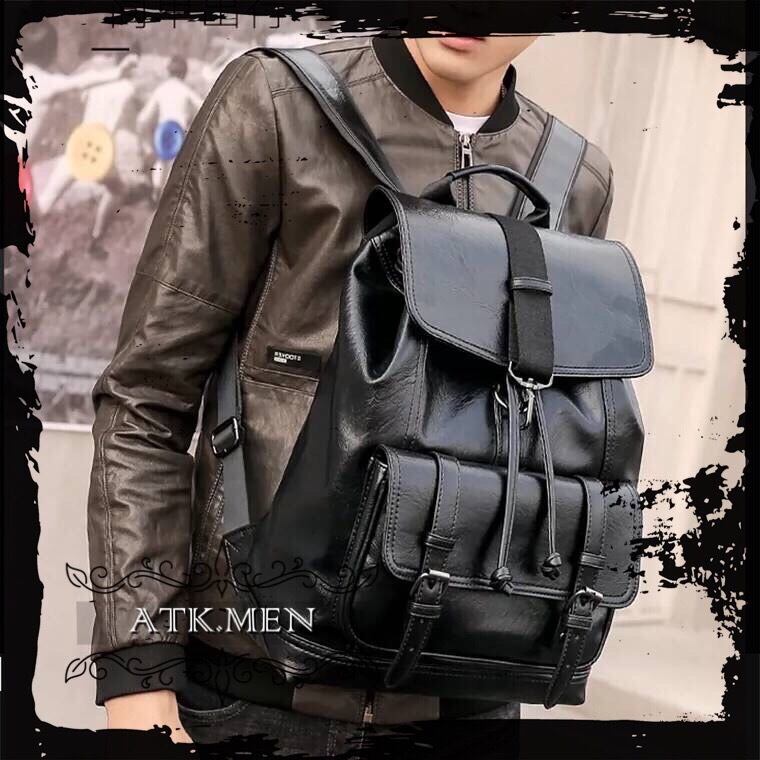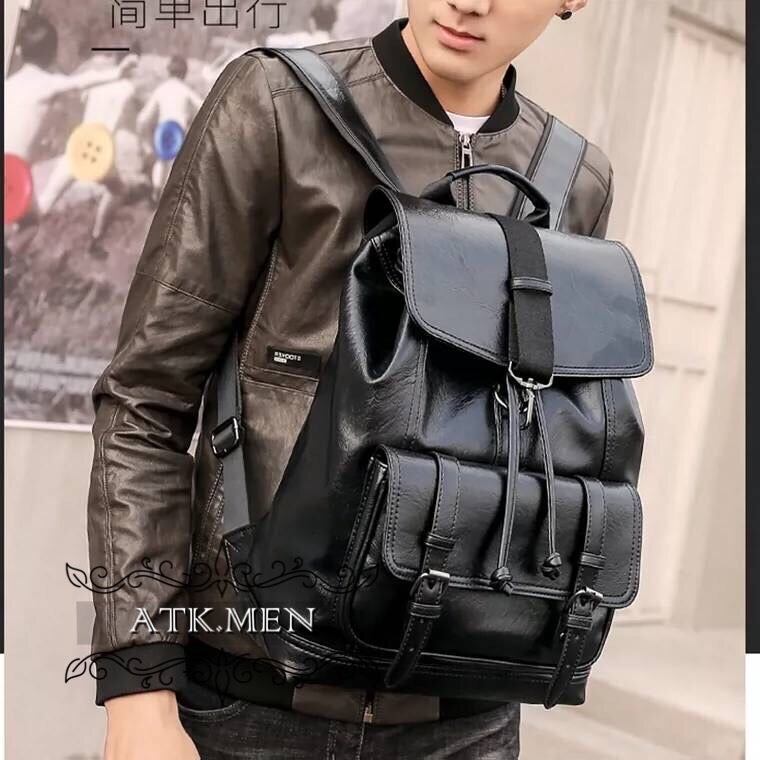 【ATK.MEN】 m2522 メンズ 革製 円筒状 バック 大容量 オシャレ 個性 韓国 原宿 黒 カバン