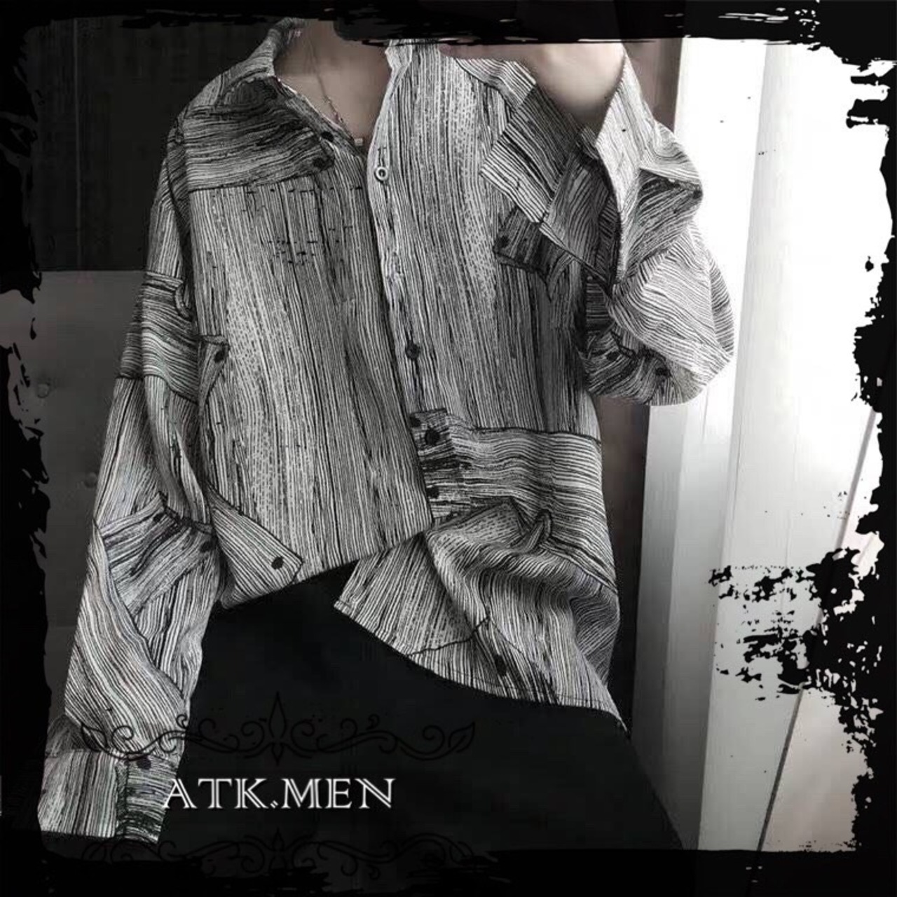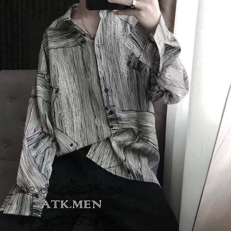 【ATK.MEN】 H124 メンズ シャツ グレー ライン 縞模様 長袖 カジュアル オシャレ デート