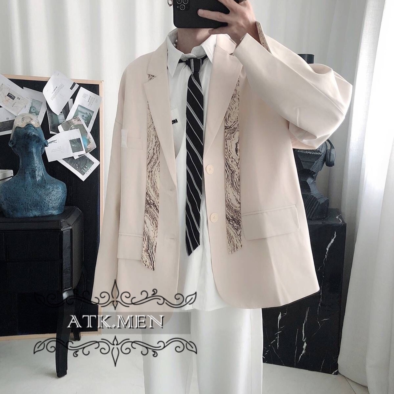【ATK.MEN】 H125 メンズ スーツ 黒 クリーム ジャケット デザイン カジュアル オシャレ かっこいい