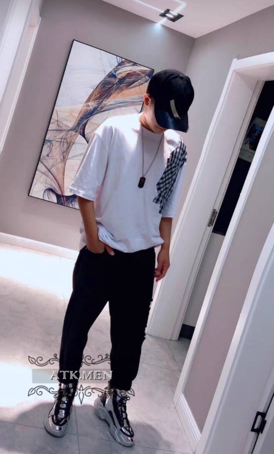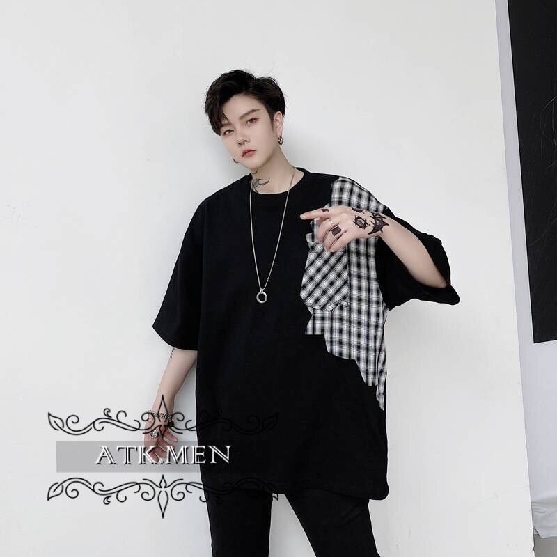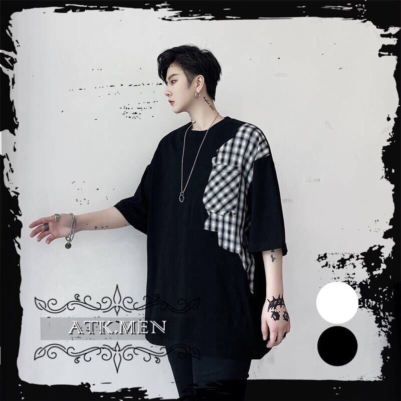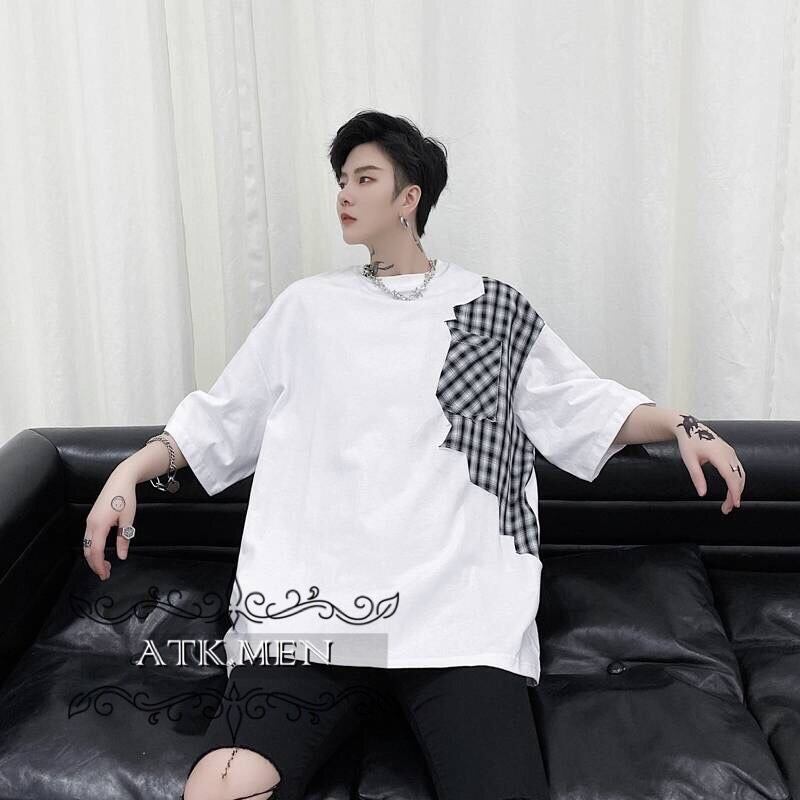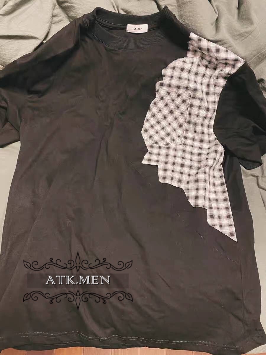 【ATK.MEN】 I11 メンズ アチンメントリ パッチワーク 民族風 半袖 ビック 白 黒 ホワイト ブラック