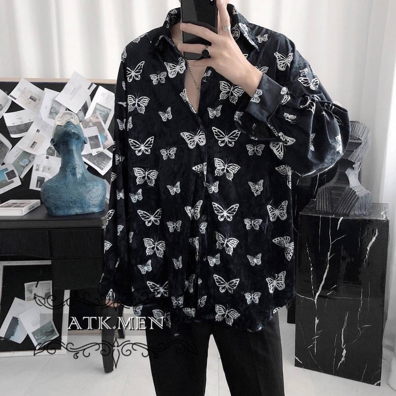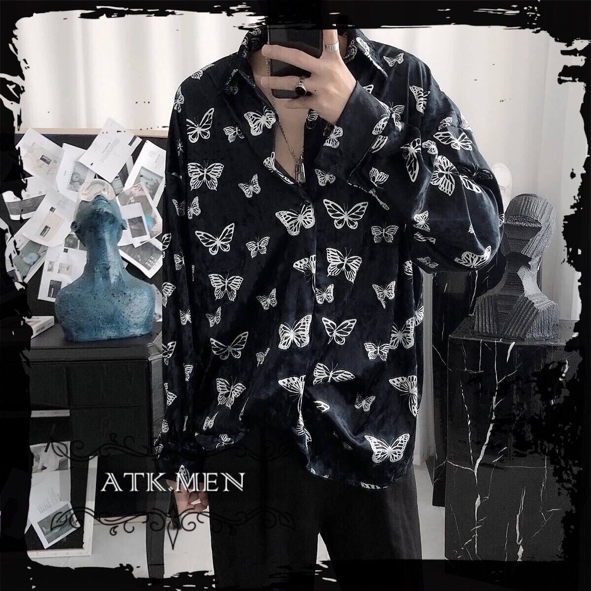 【ATK.MEN】 H115 メンズ 蝶 シャツ 黒 長袖 ビックサイズ カジュアル ビジュアル 中性