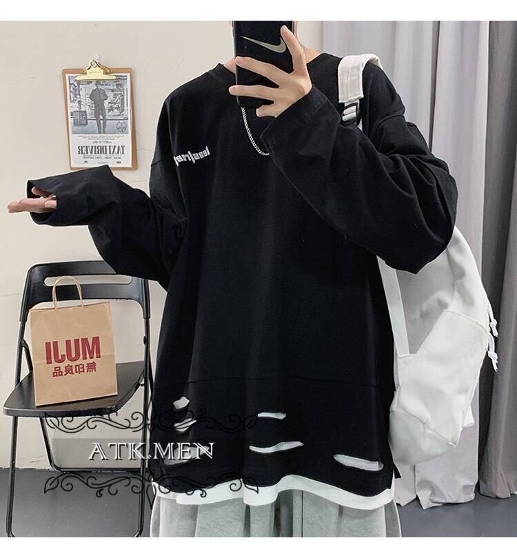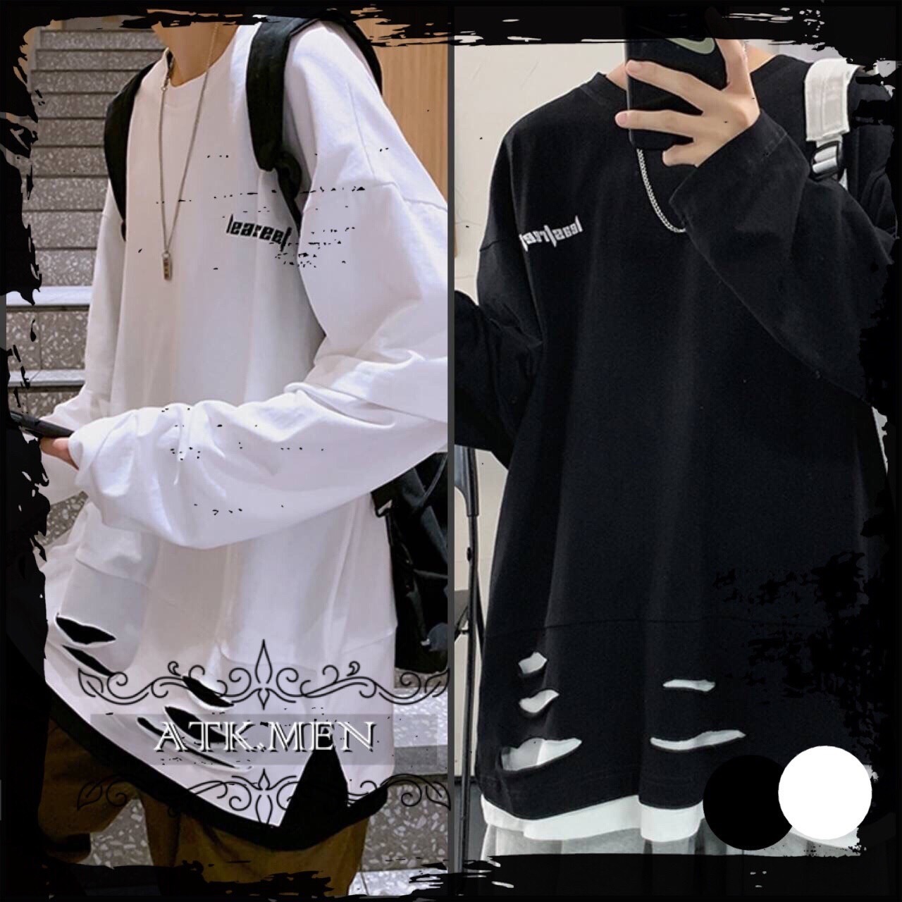 【ATK.MEN】 H101 メンズ レディース 破れ 黒 白 ダメージ シャツ 長袖 重ね着 カジュアル ダンス