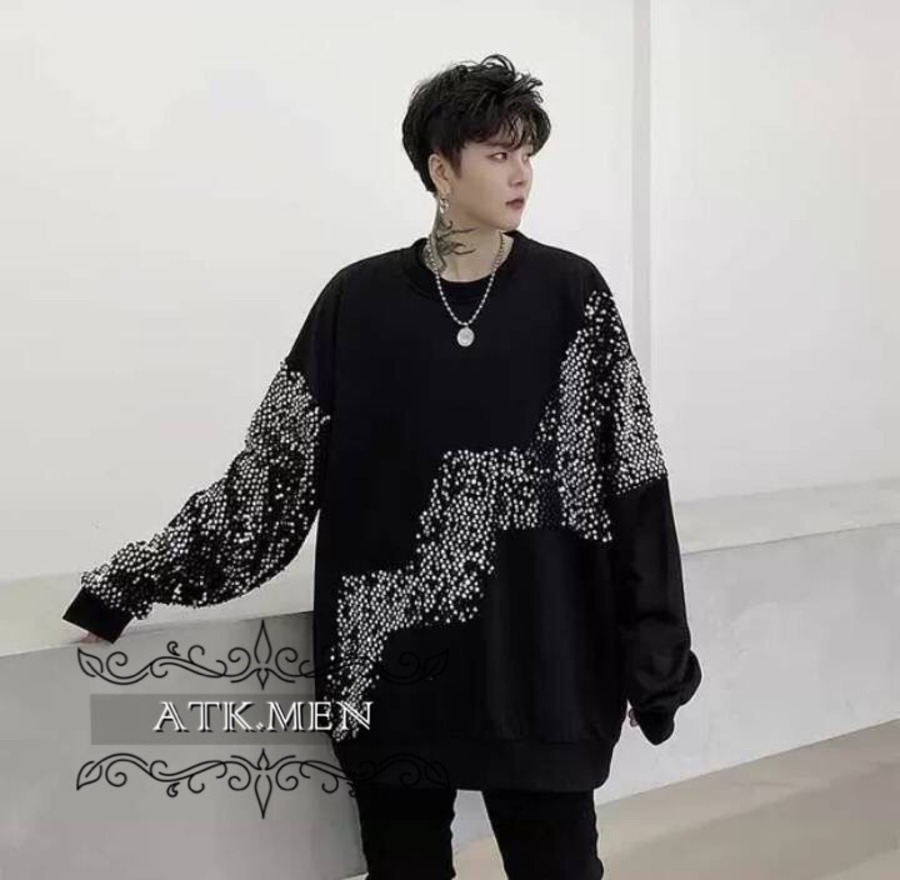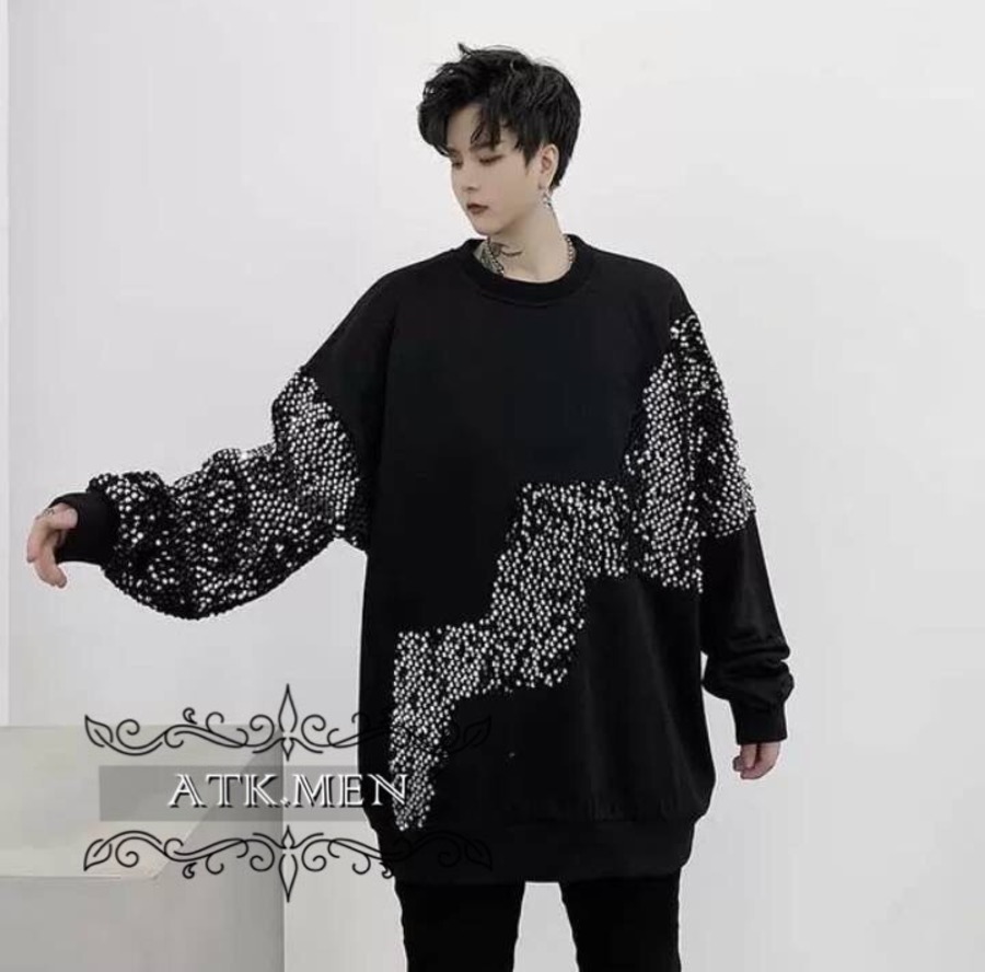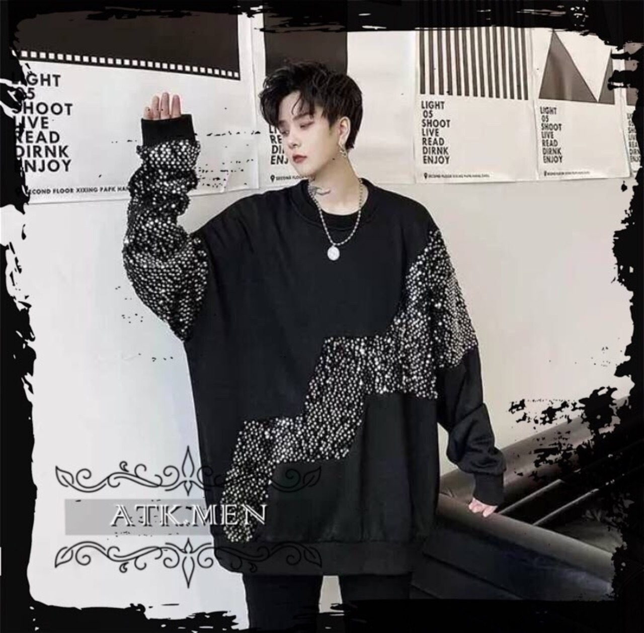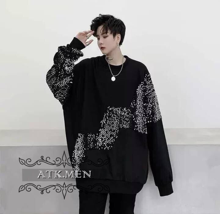 【ATK.MEN】 H81 メンズ パーカー 長袖 韓国 デザイン 黒 グレイ 模様 美形 カジュアル