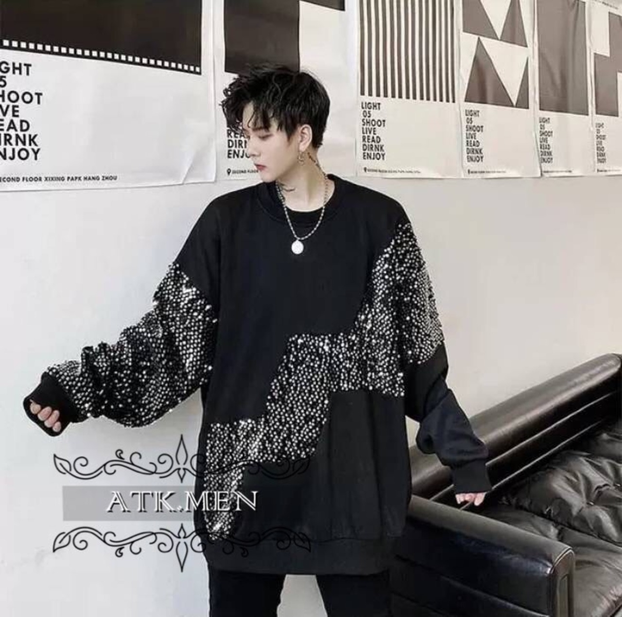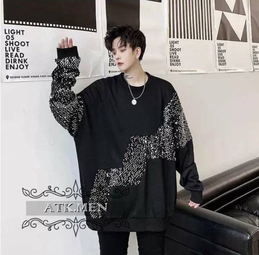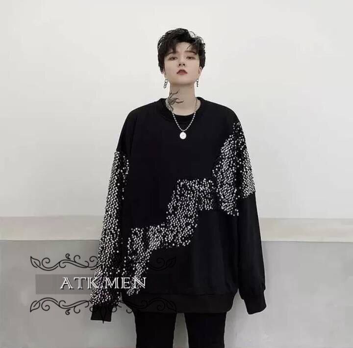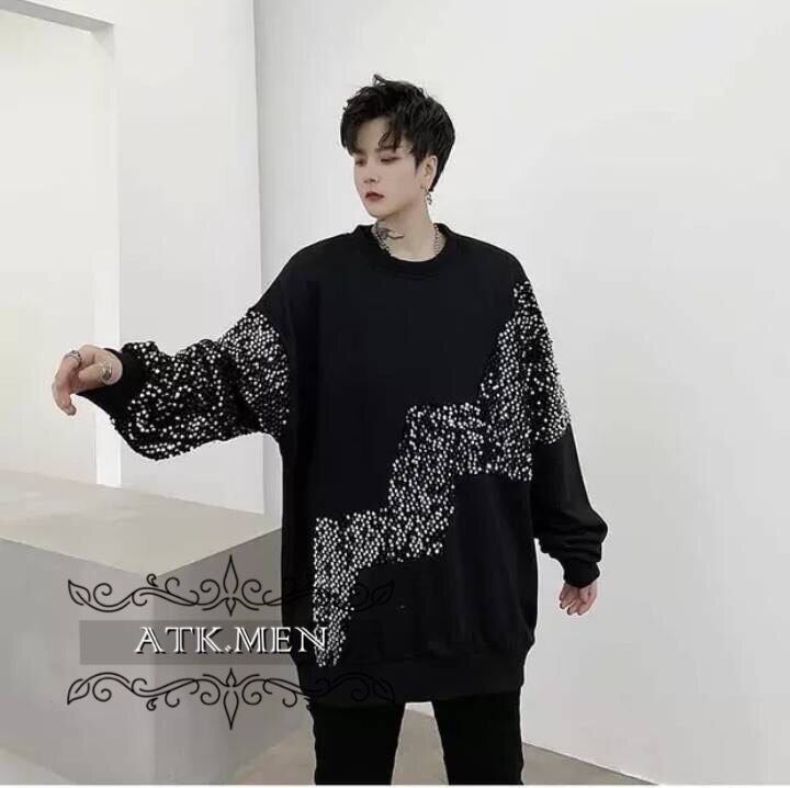 【ATK.MEN】 H81 メンズ パーカー 長袖 韓国 デザイン 黒 グレイ 模様 美形 カジュアル