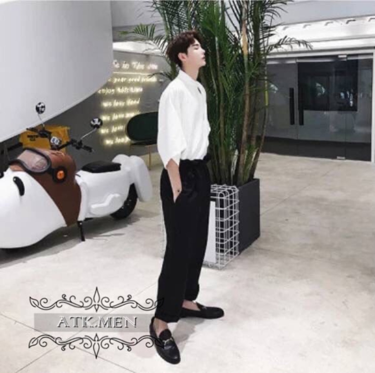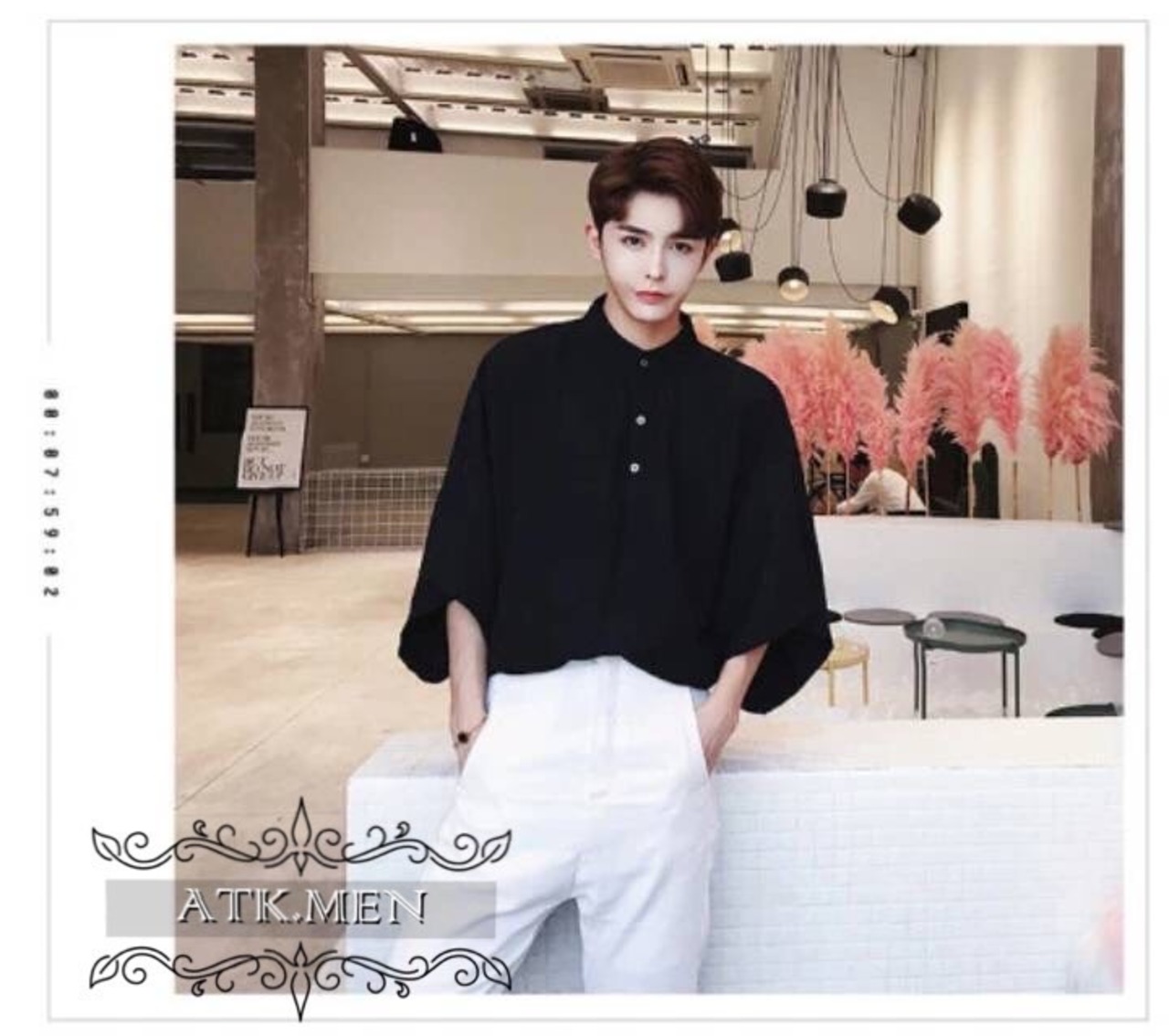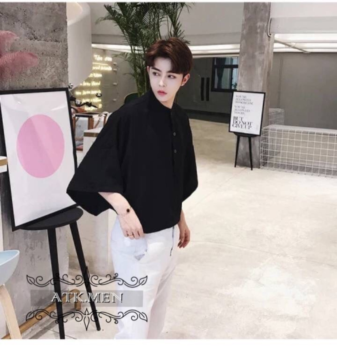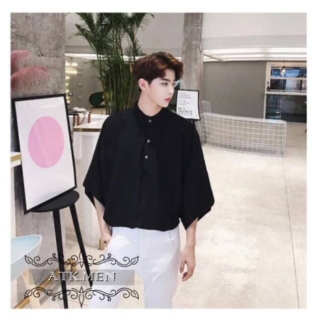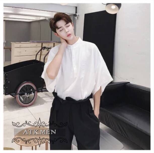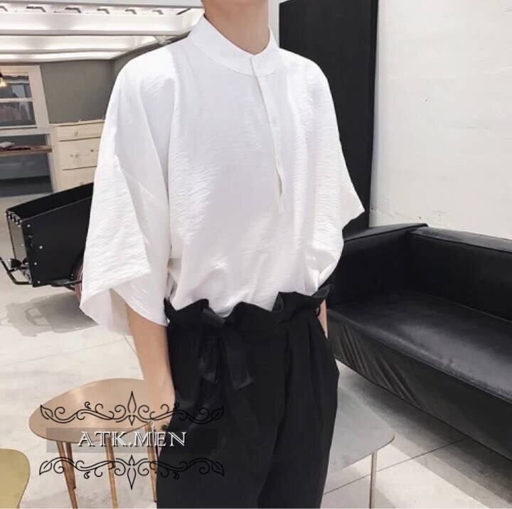 【ATK.MEN】 H91 メンズ シャツ シンプル ビジネス 白 黒 中袖 通勤 ビック サイズ