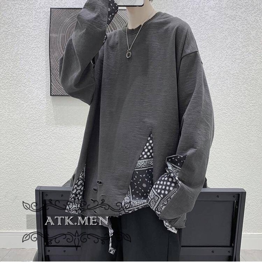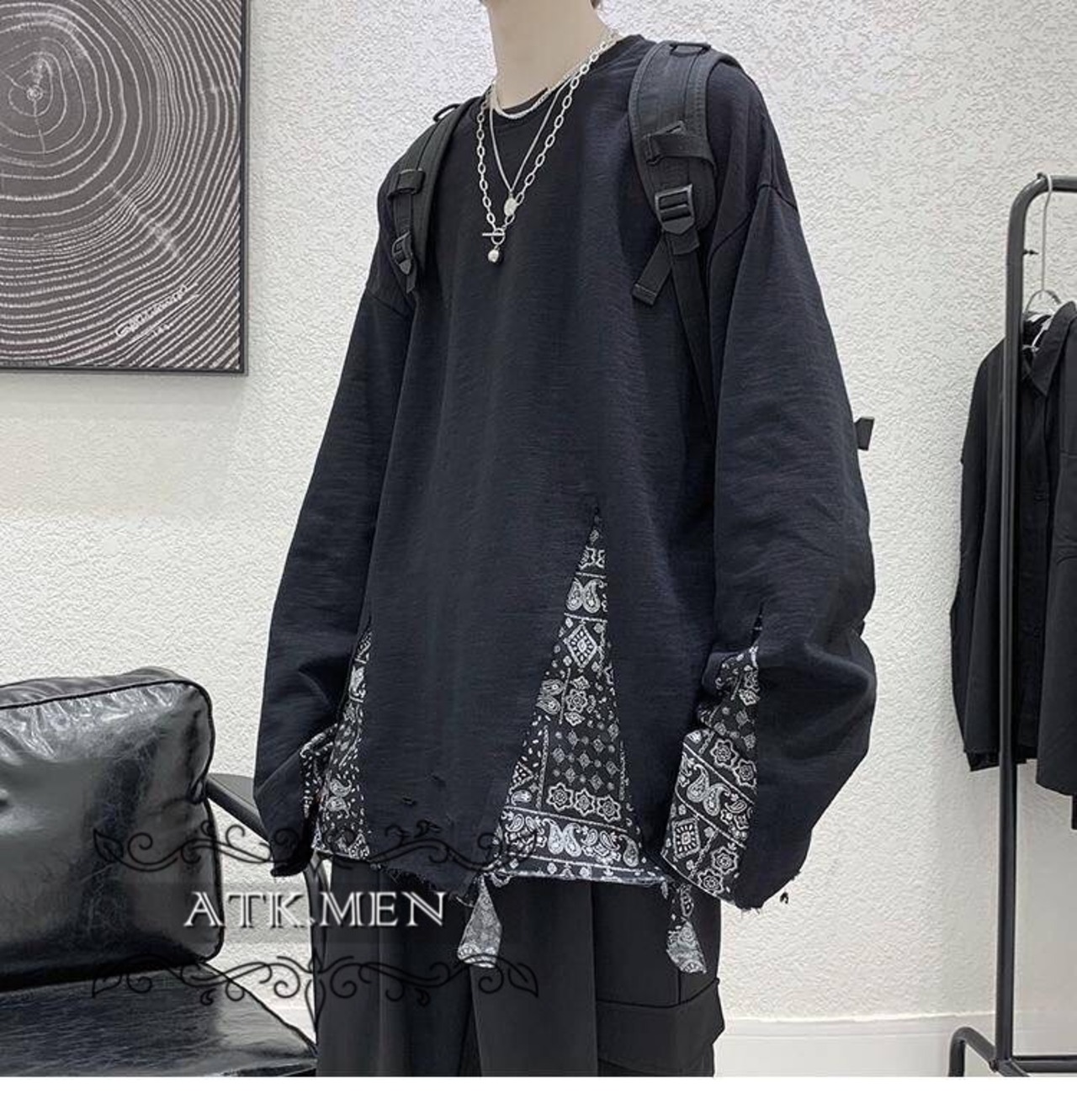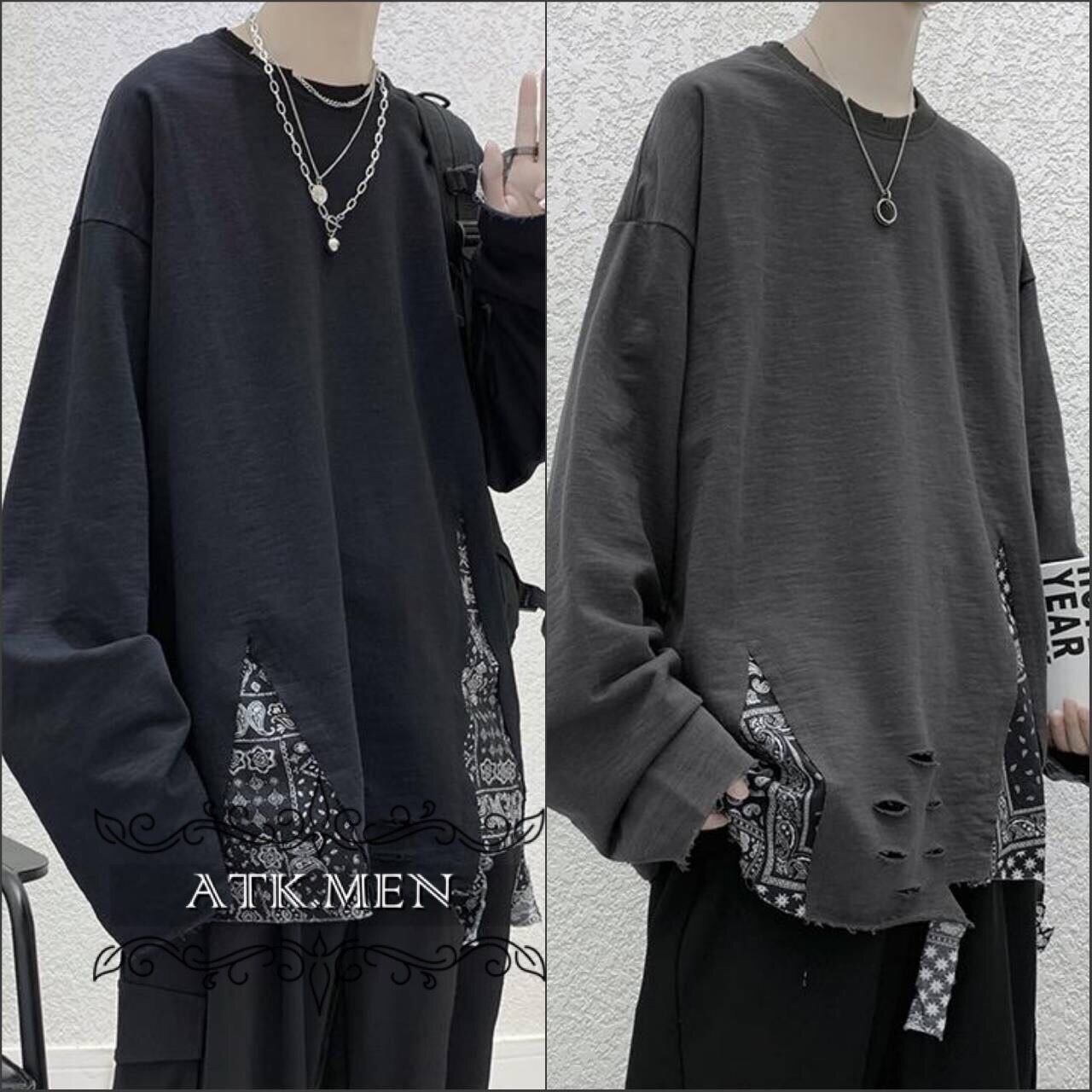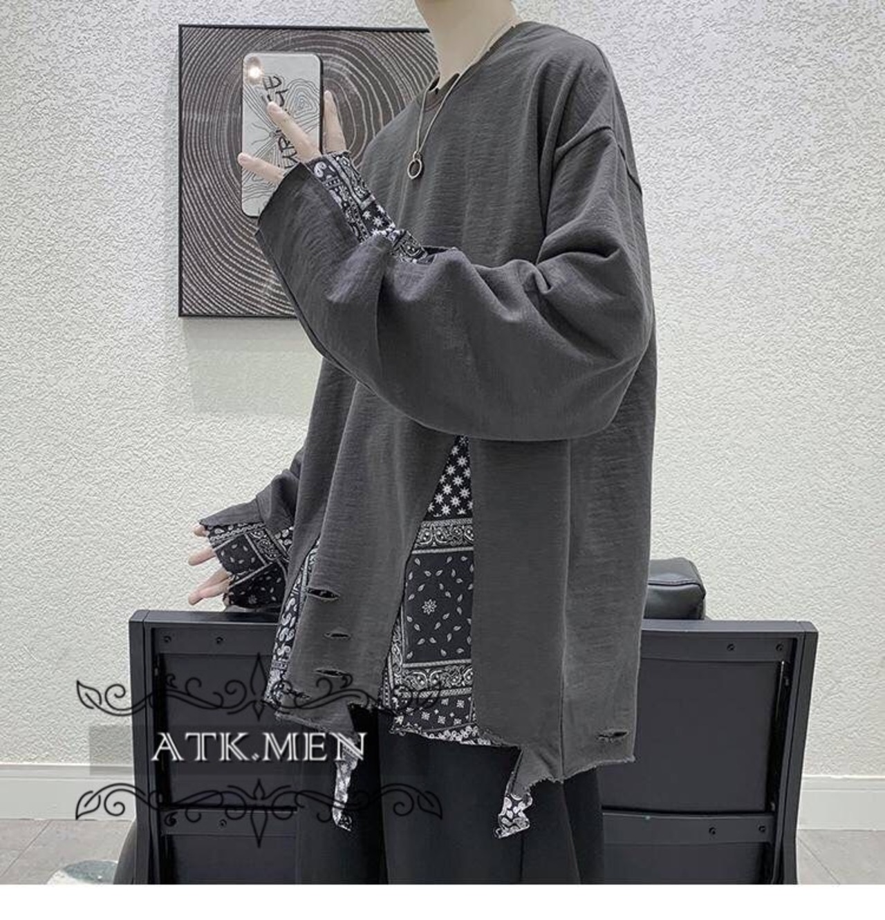 【ATK.MEN】 H34 メンズ 長袖 シャツ パーカ デザイン ダメージ 韓国 クール 民族 カジュアル系