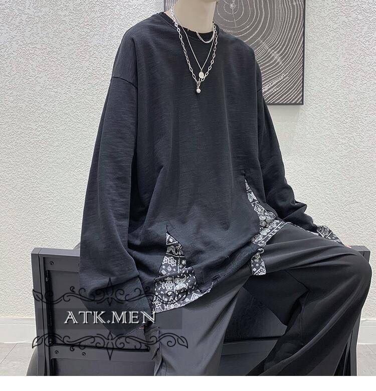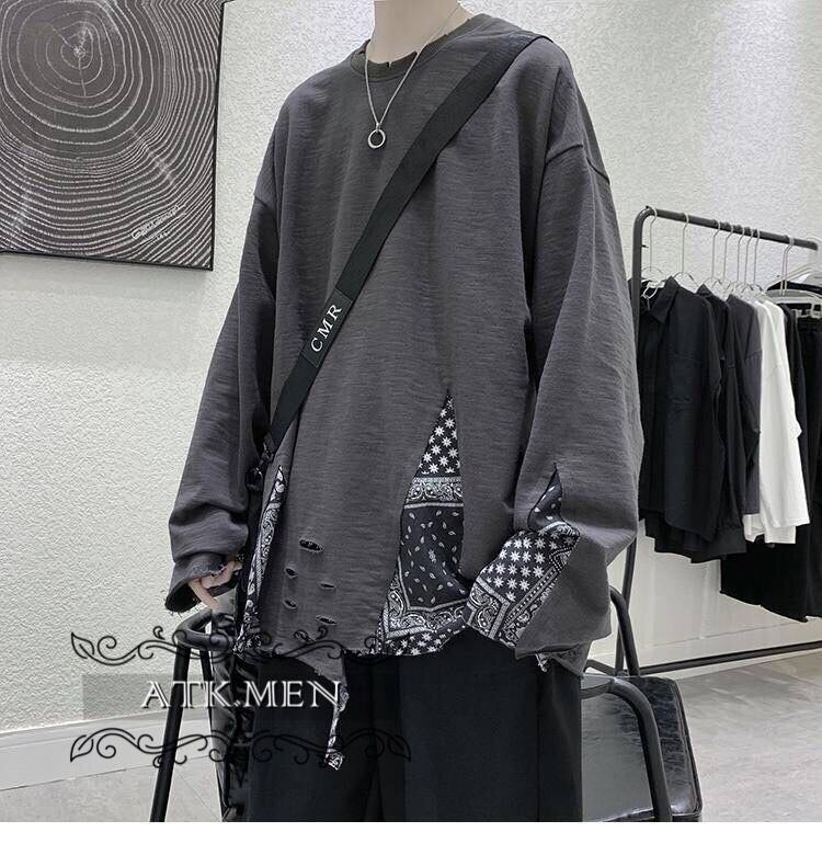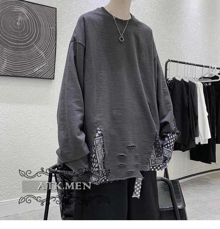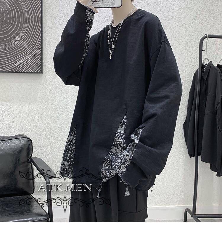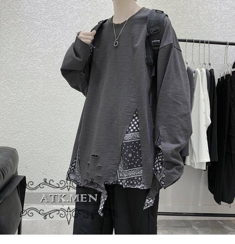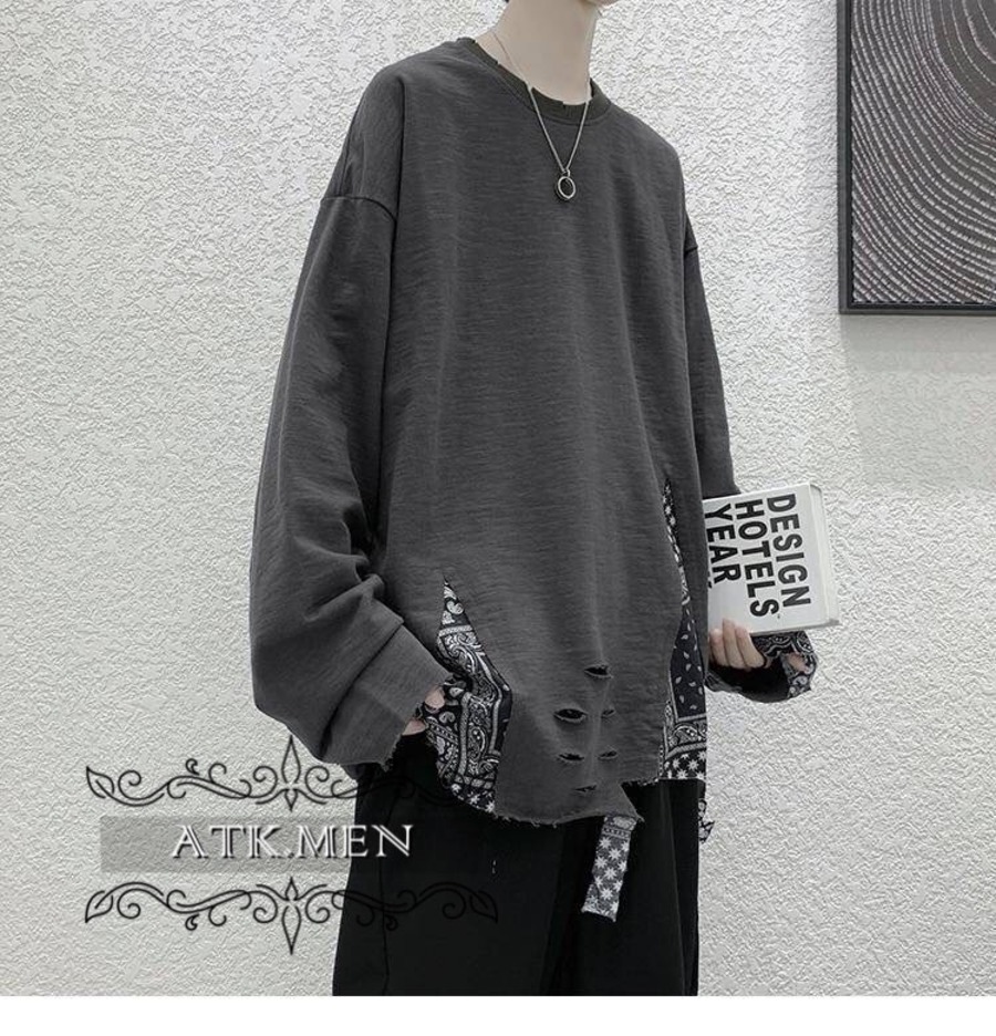 【ATK.MEN】 H34 メンズ 長袖 シャツ パーカ デザイン ダメージ 韓国 クール 民族 カジュアル系