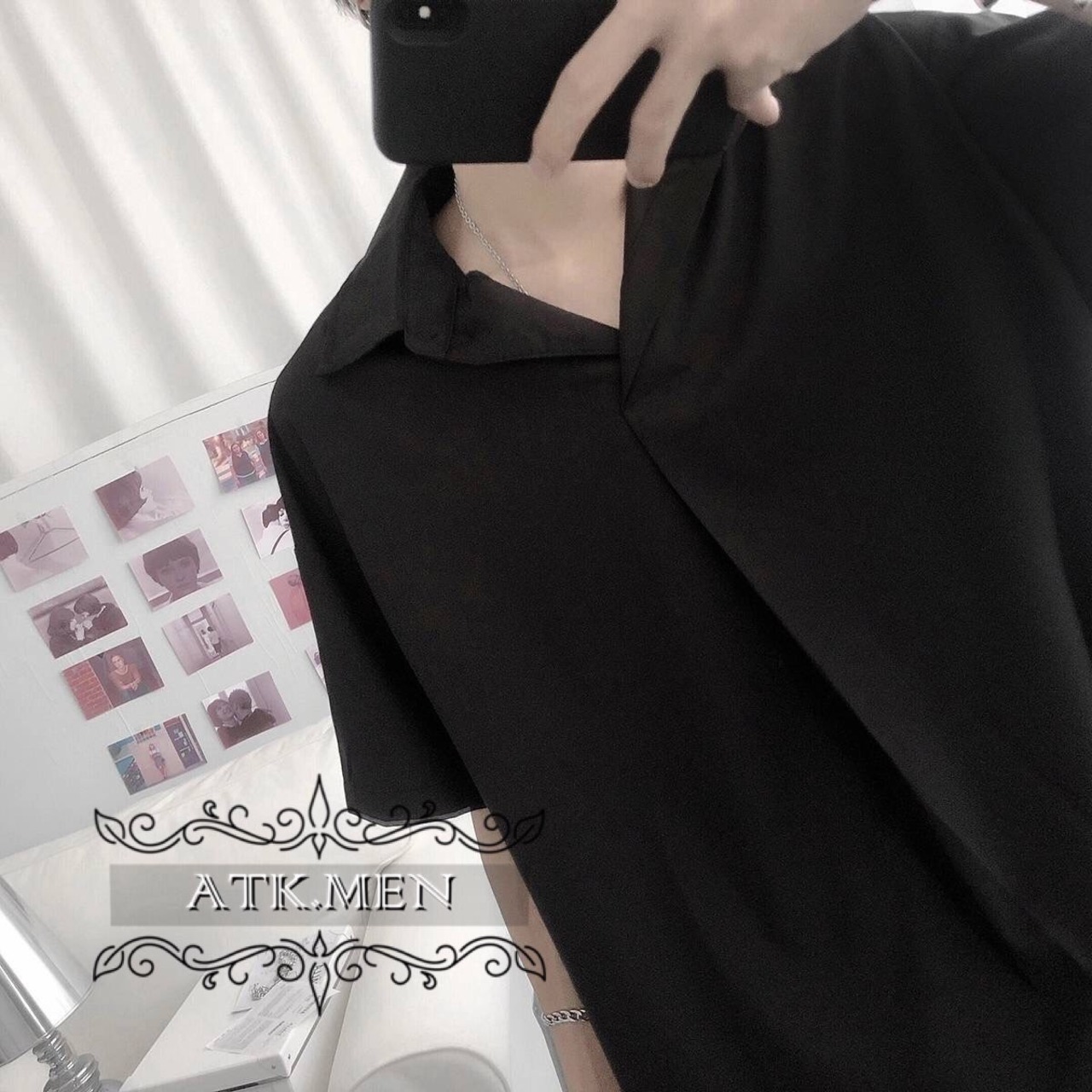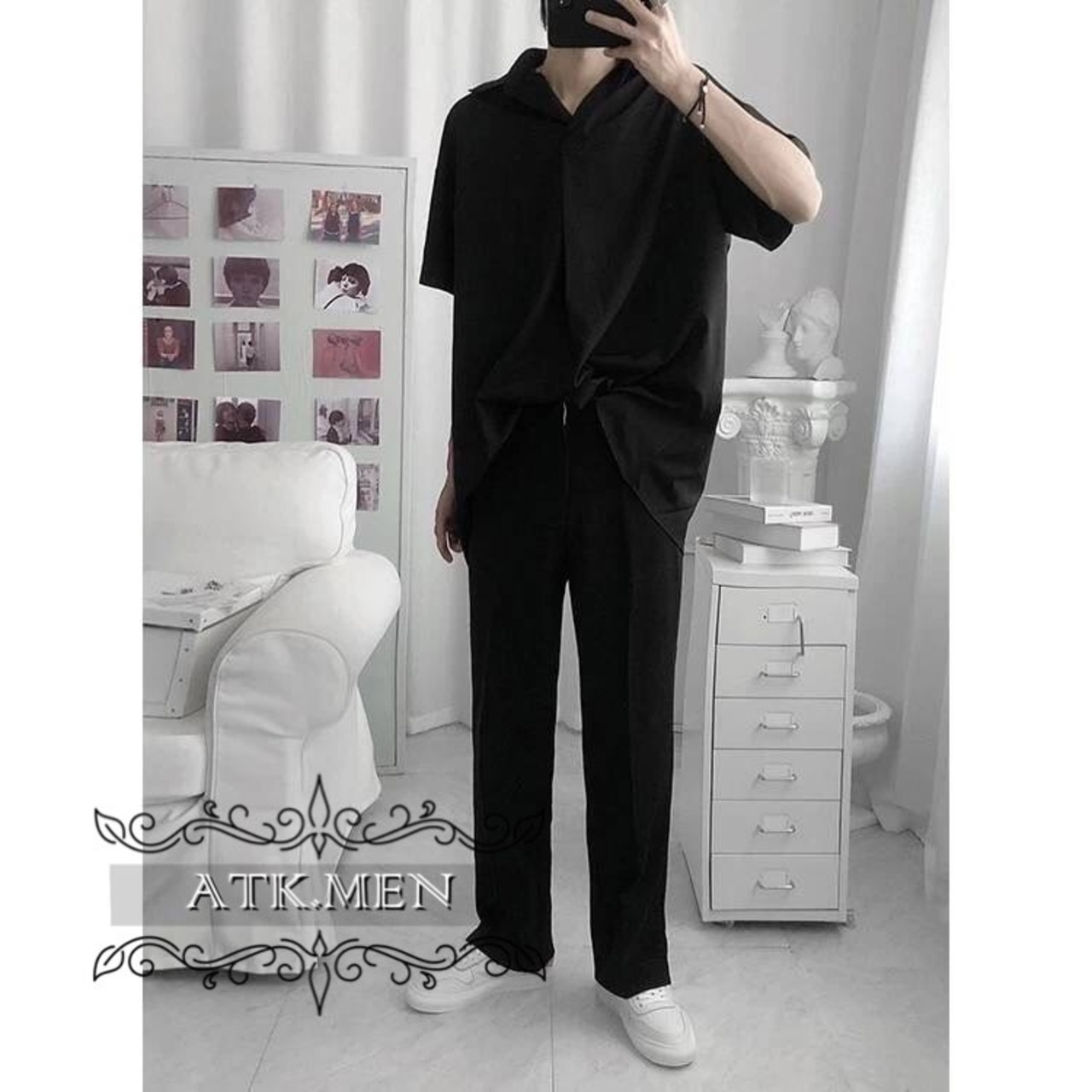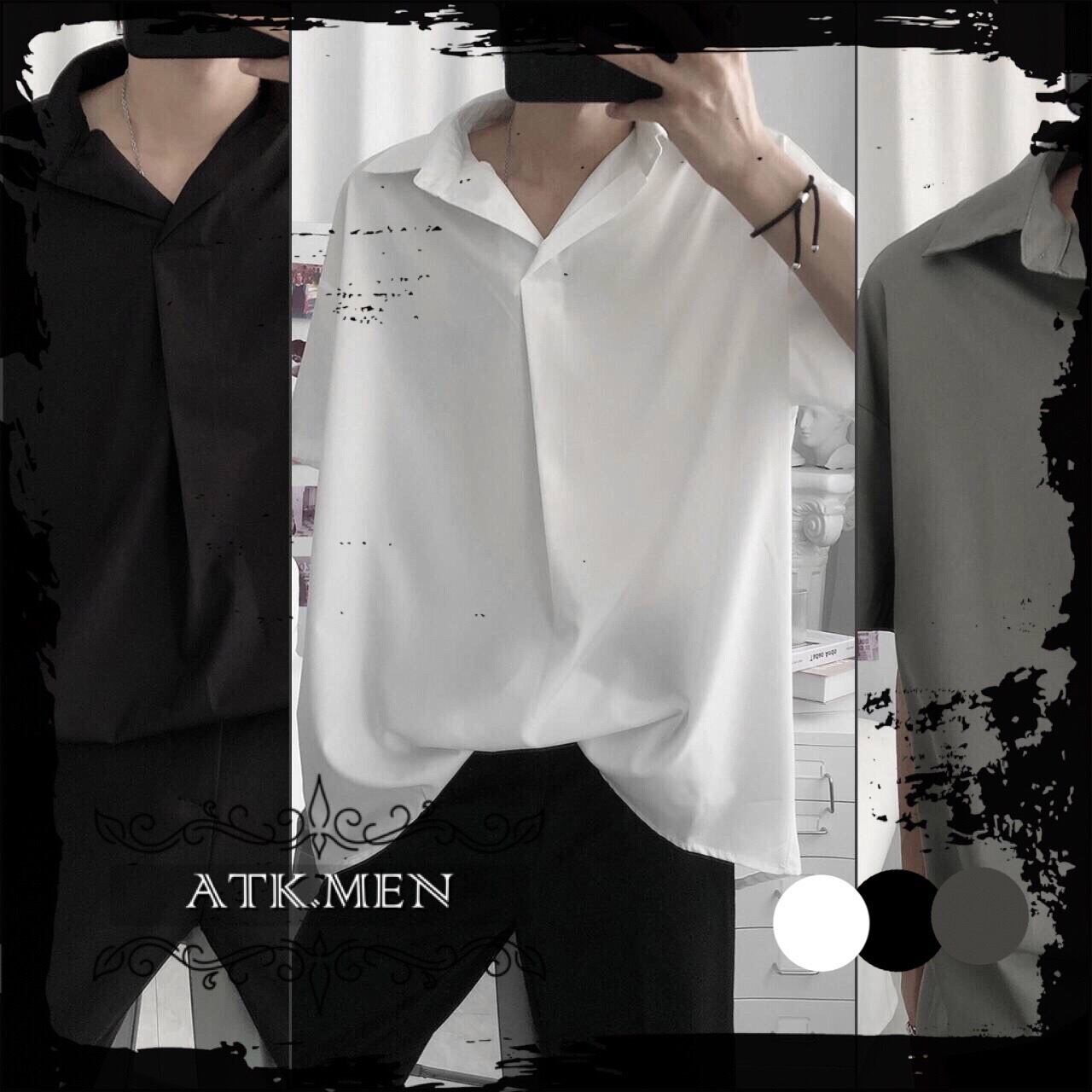 【ATK.MEN】 H43 メンズ 黒 白 グレー 半袖 シャツ シンプル デザイン 韓国 通勤 ビジネス