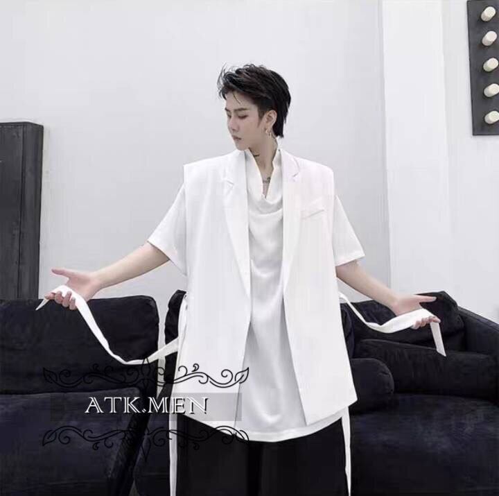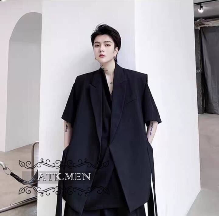 【ATK.MEN】 H33 メンズ 半袖 ジャケット カジュアル系 韓国 コート クール かっこいい デザイン 白 黒