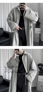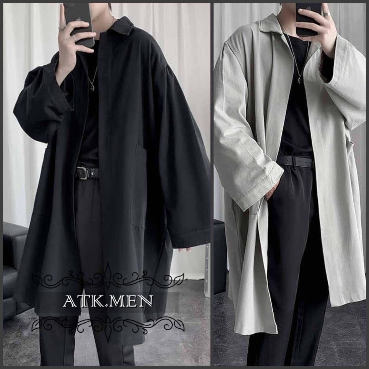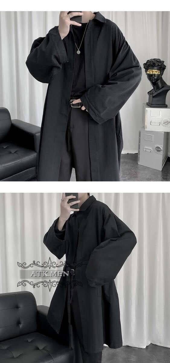 【ATK.MEN】 H13 ステンカラーコート バックベルト ボリューム袖 ビックサイズ 大きめコート