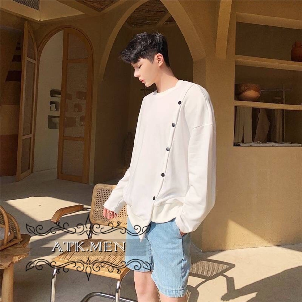 【ATK.MEN】 G103 メンズ シャツ デザイン アシンメトリー 韓国 ボタン クール ダンス 団体
