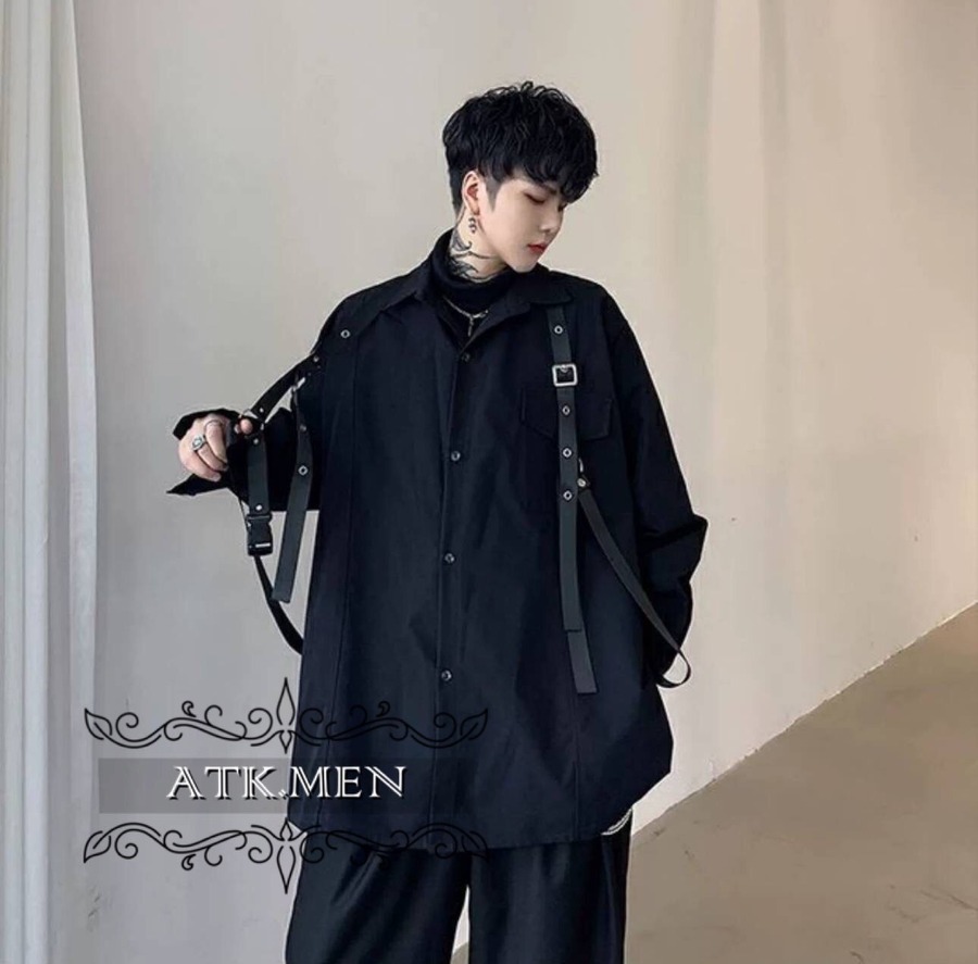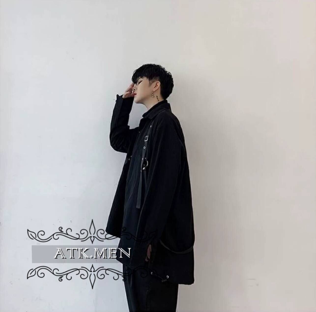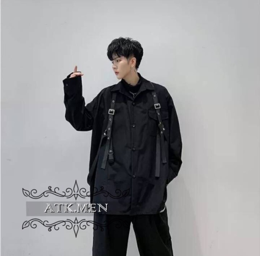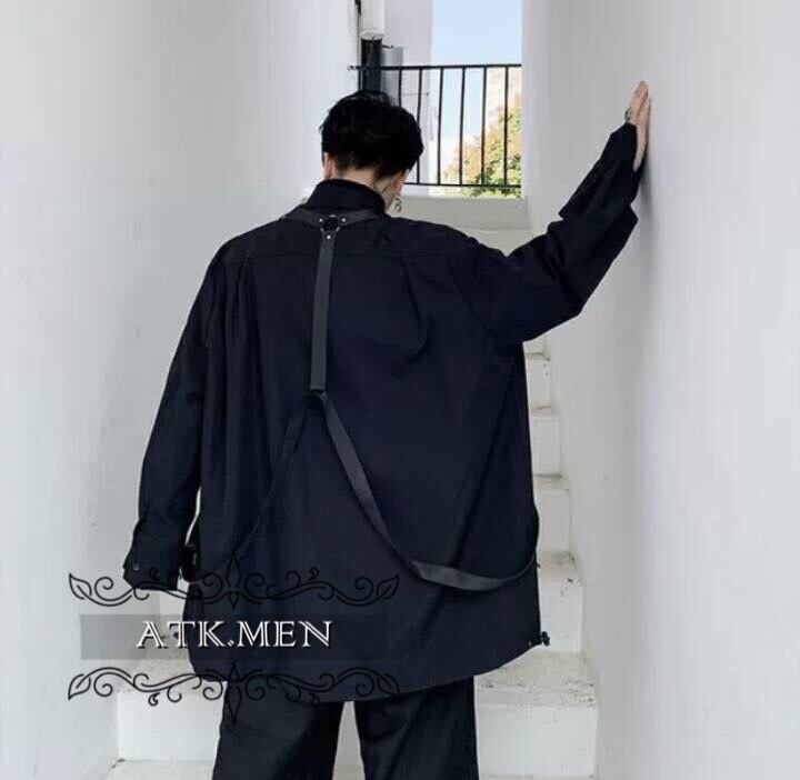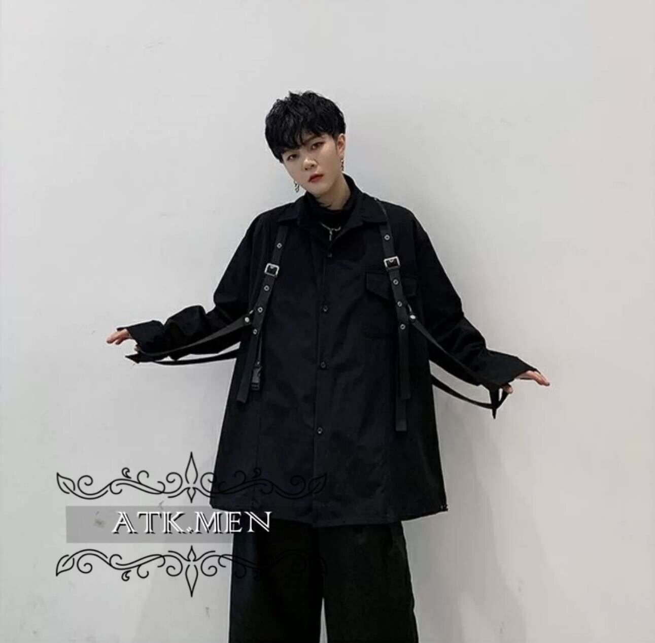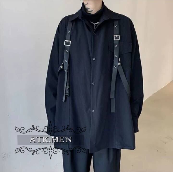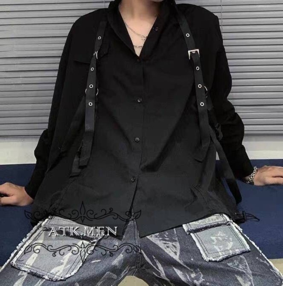 【ATK.MEN】 G45 メンズ シャツ 個性 ペルト 黒 韓国 ビジュアル デザイン ストリート