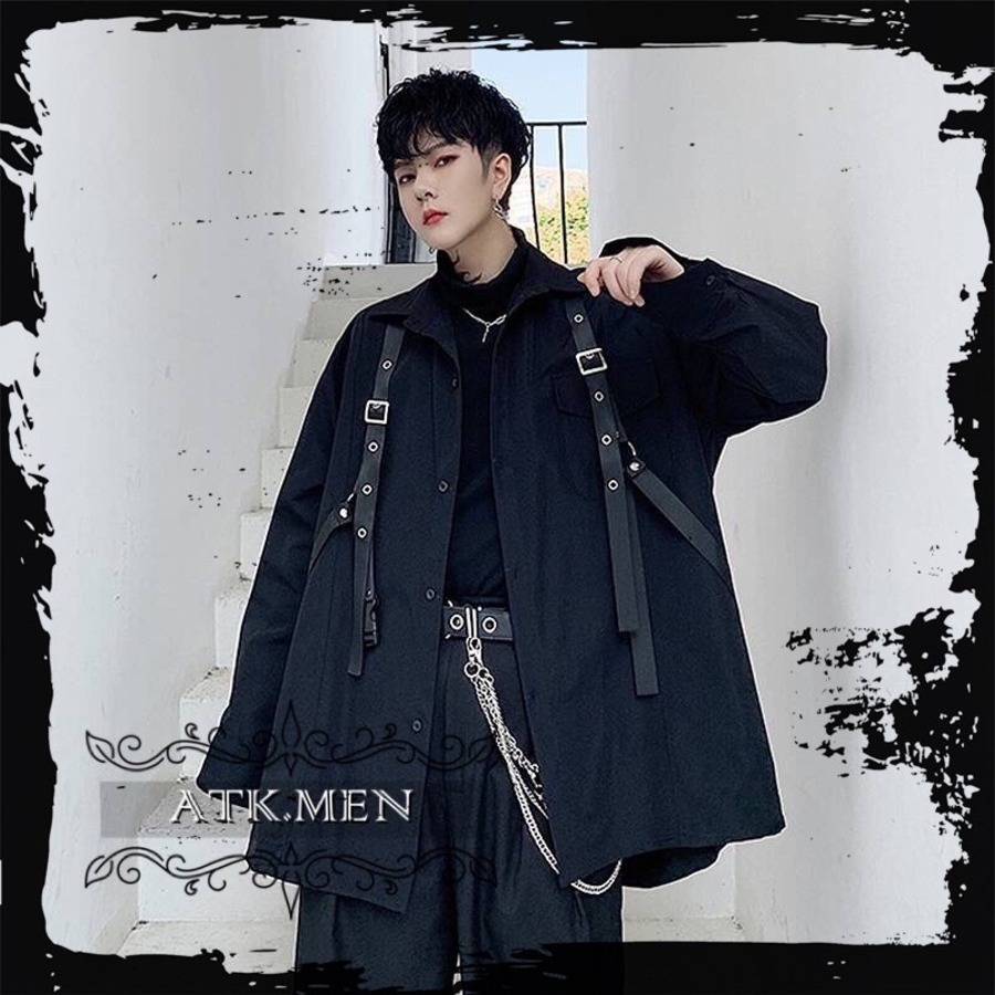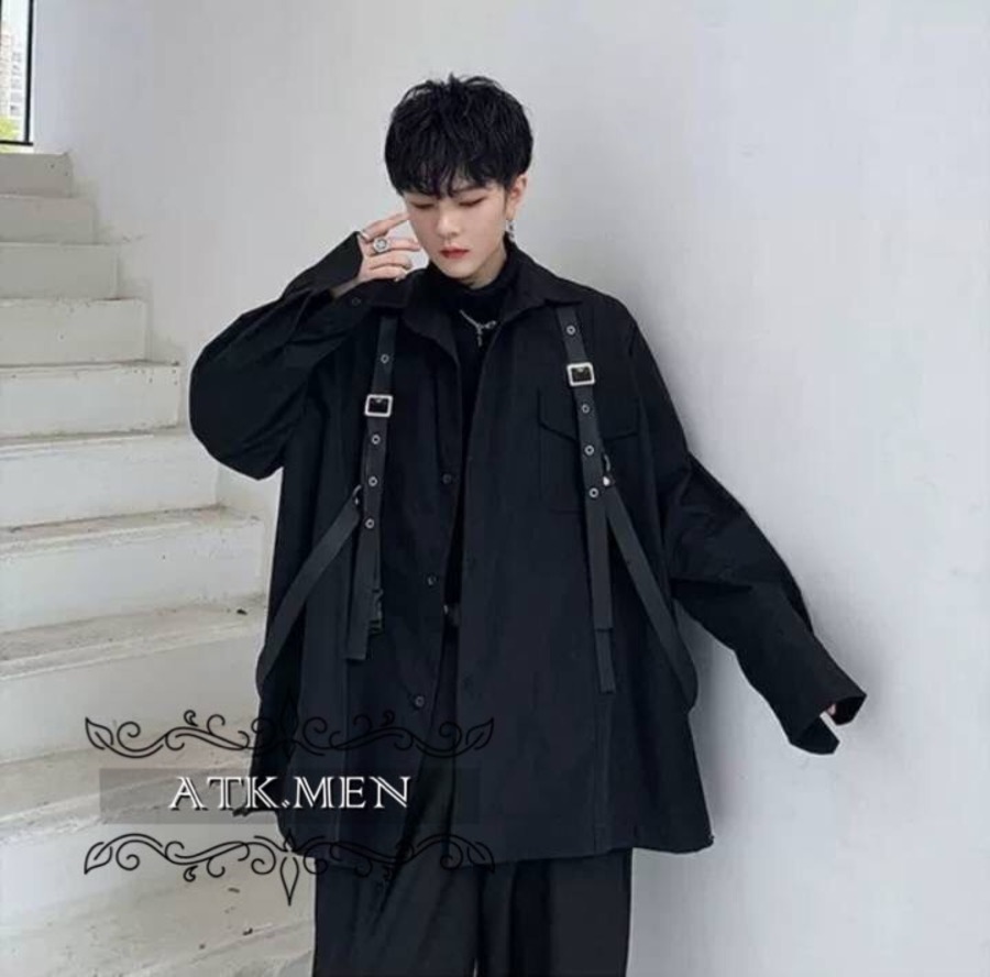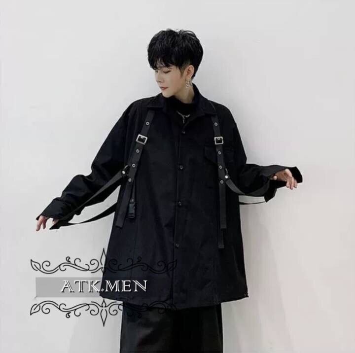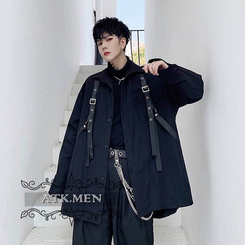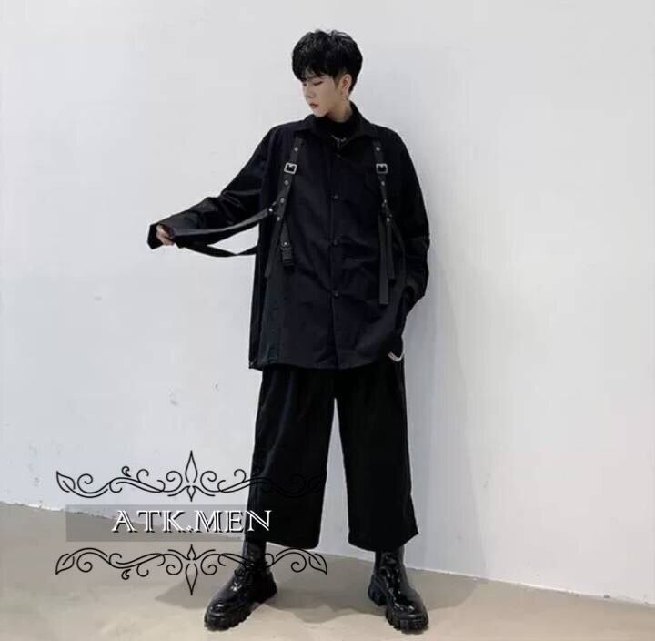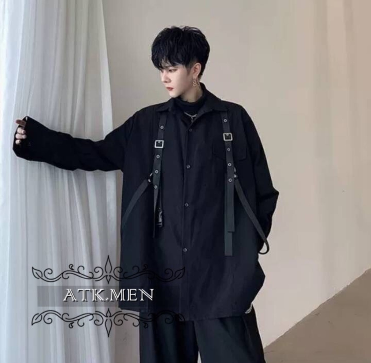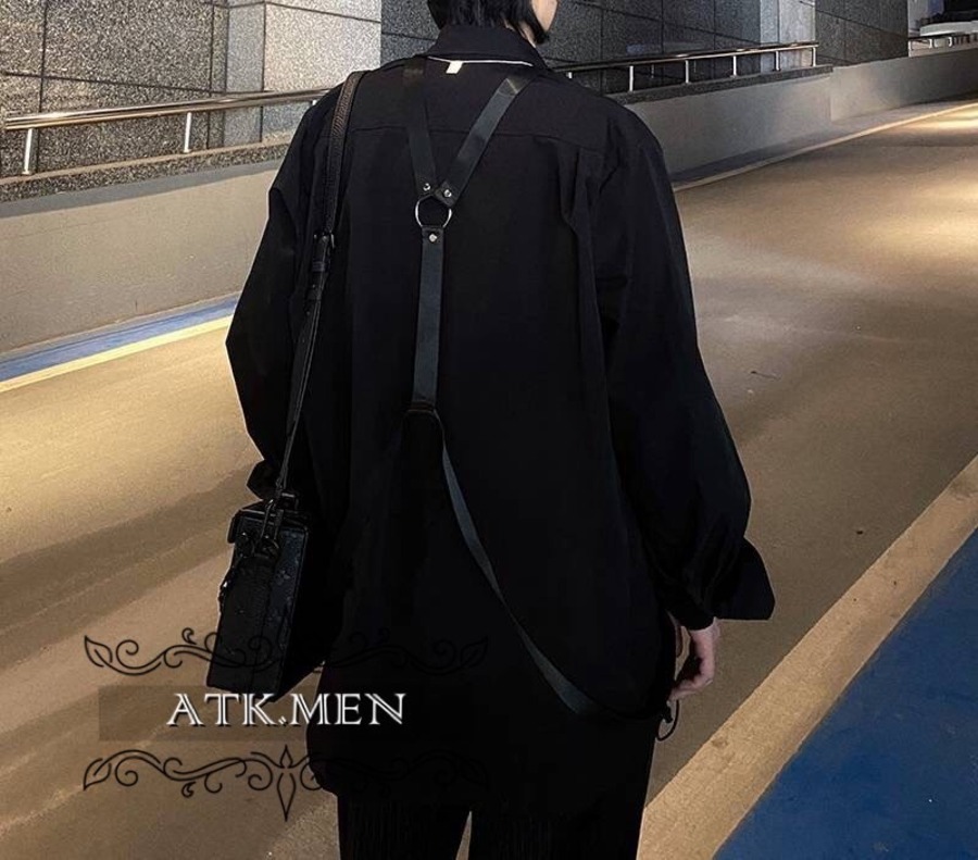【ATK.MEN】 G45 メンズ シャツ 個性 ペルト 黒 韓国 ビジュアル デザイン ストリート