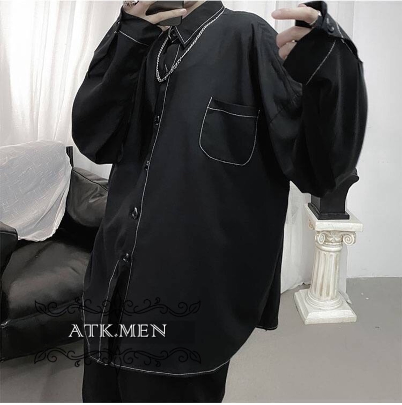 【ATK.MEN】 G54 メンズ シャツ オシャレ シンプル 無地 線 カジュアル ストリート 韓国