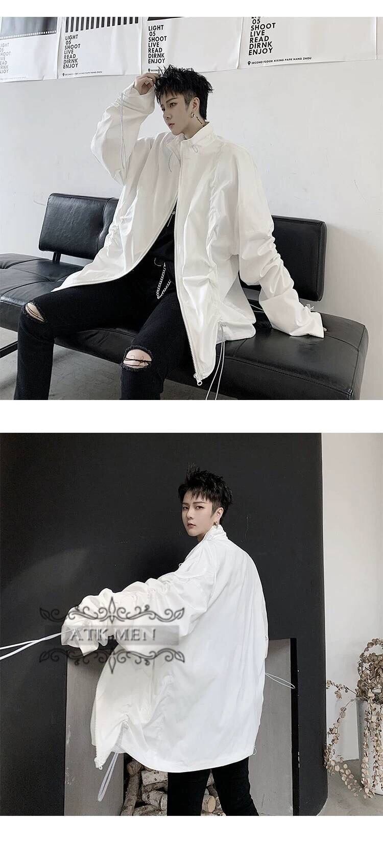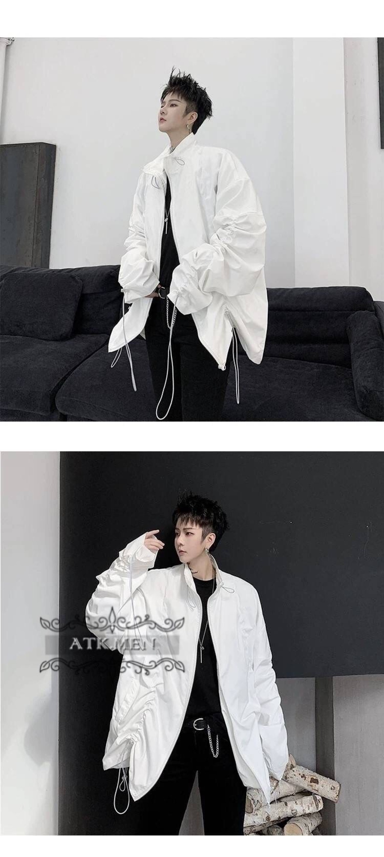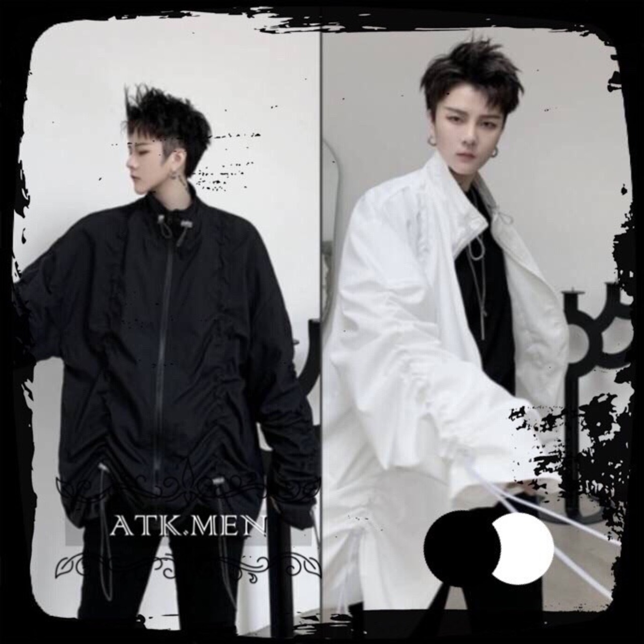【ATK.MEN】 G24 メンズ 韓国 パーカー 白黒 カジュアル ファッション 服 個性 デザイン ダンス 演出 ストリート系
