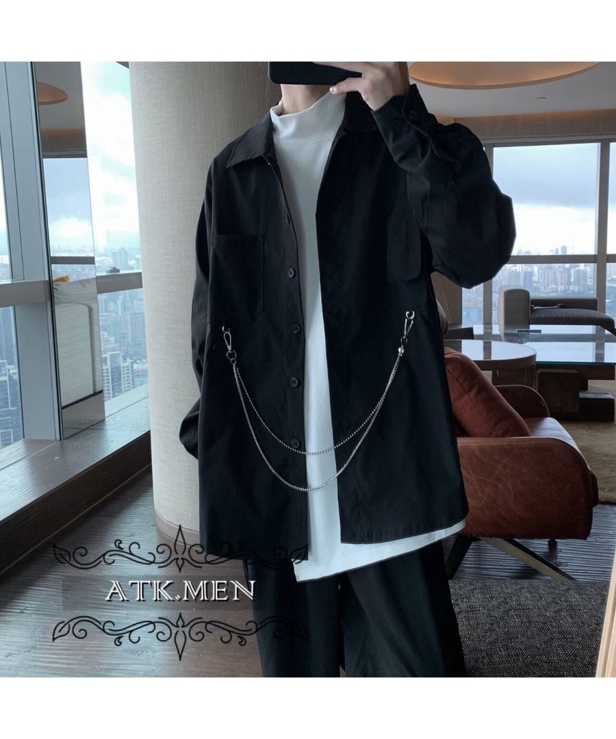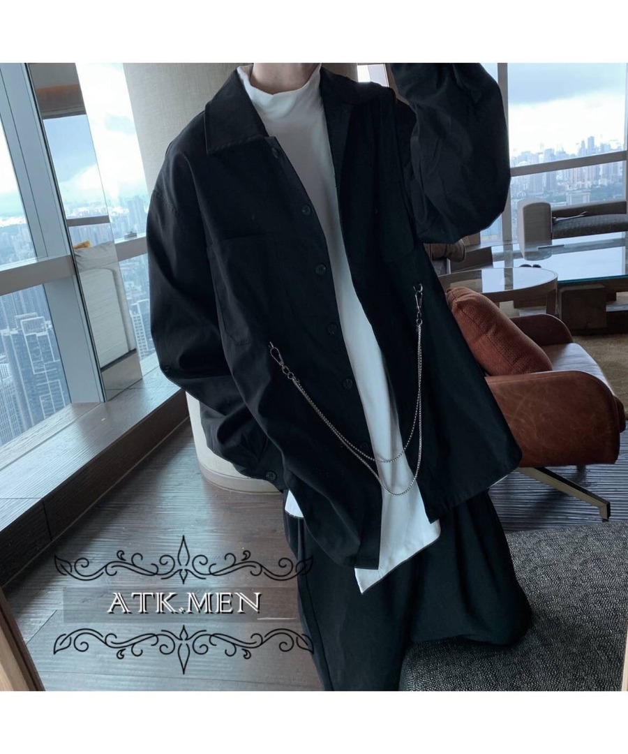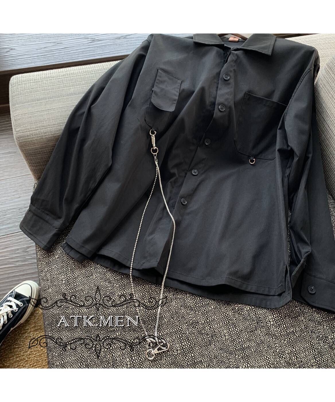 【ATK.MEN】 F124 メンズ カジュアル ファッション 服 クール チェン シャツ 長袖 黒 ダンス 演出 ストリート系