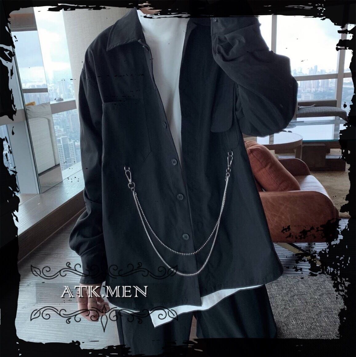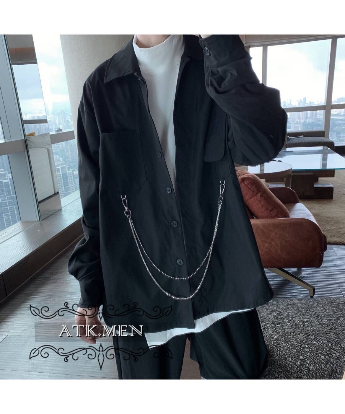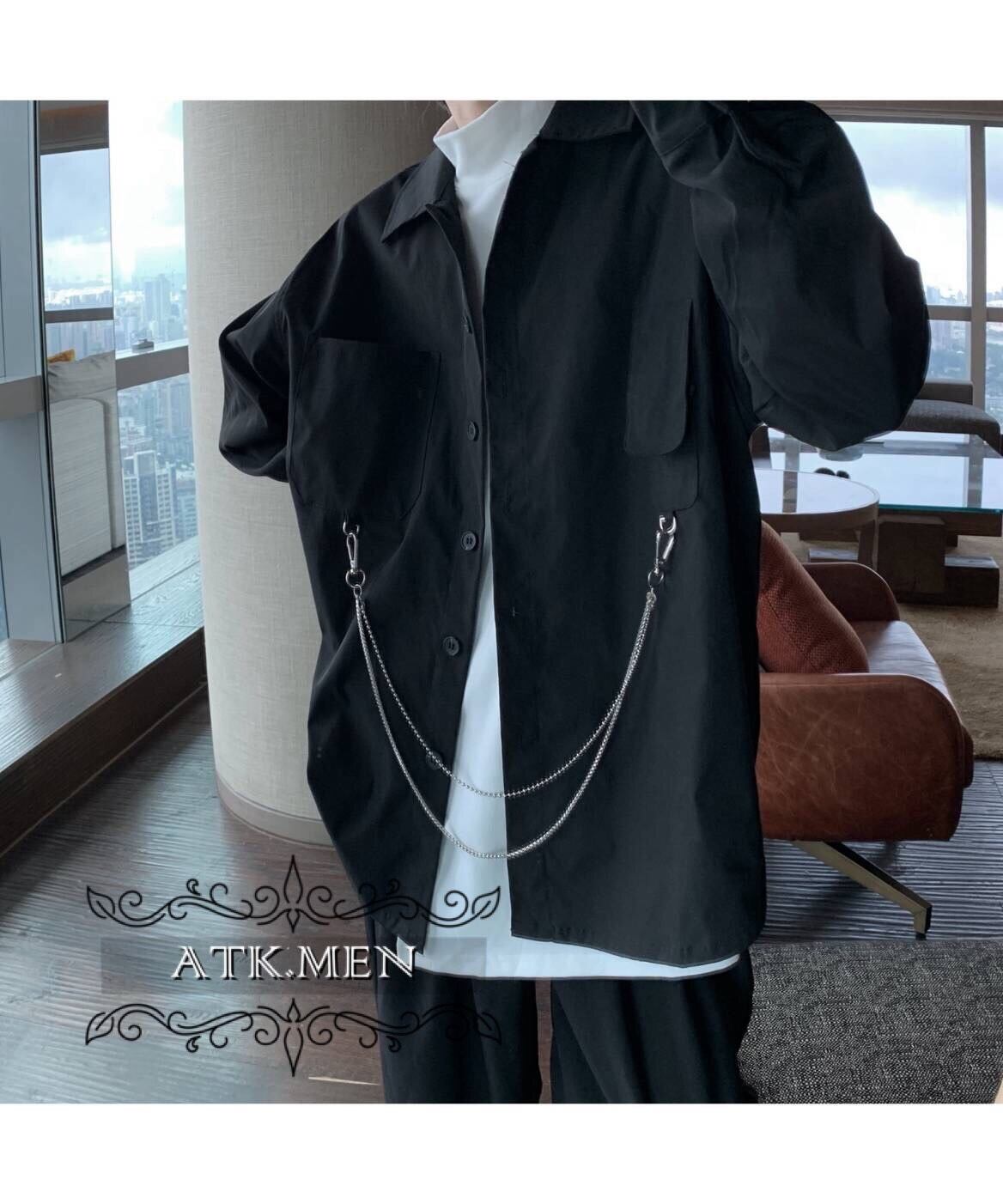 【ATK.MEN】 F124 メンズ カジュアル ファッション 服 クール チェン シャツ 長袖 黒 ダンス 演出 ストリート系