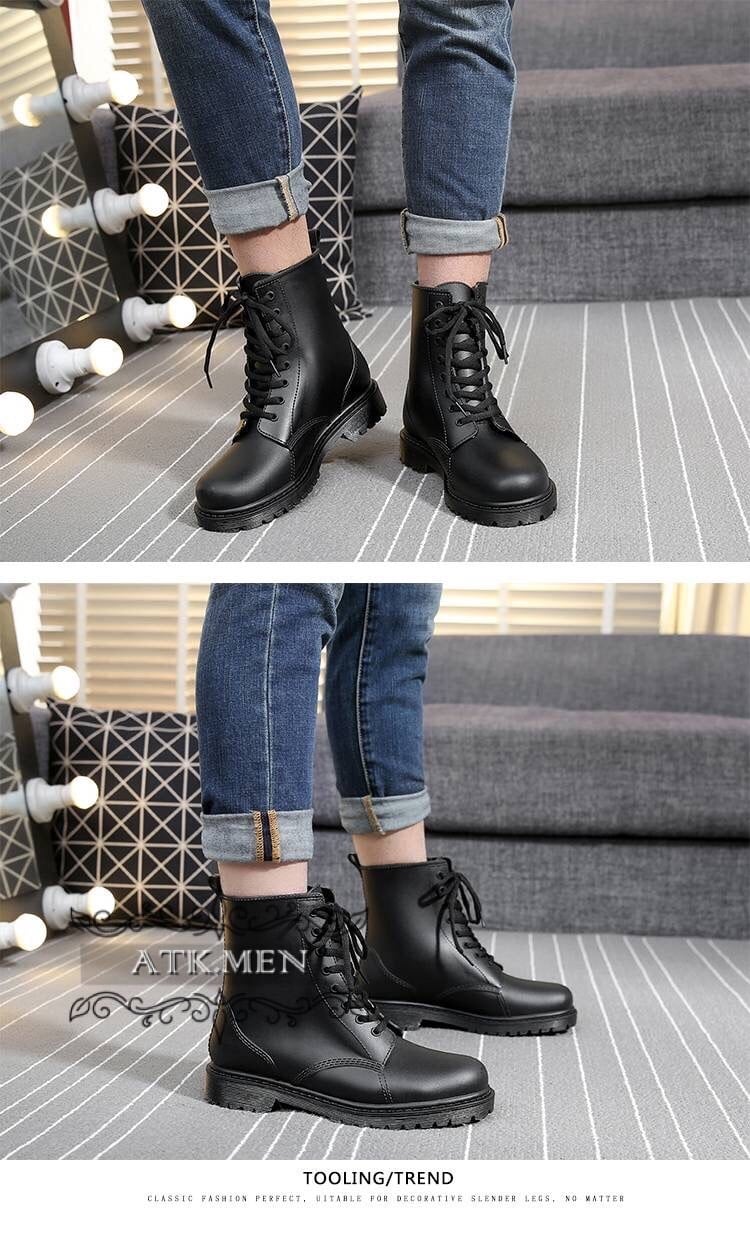 【ATK.MEN】 F104 レインシューズ オシャレ かっこいい ゴム ブーツ 紐 シューズ 登山靴 マウンテン 作業 防滑シューズ 安全靴 耐滑 雨靴 梅雨 品質 防水 撥水 ダンス 演出 ストリート系