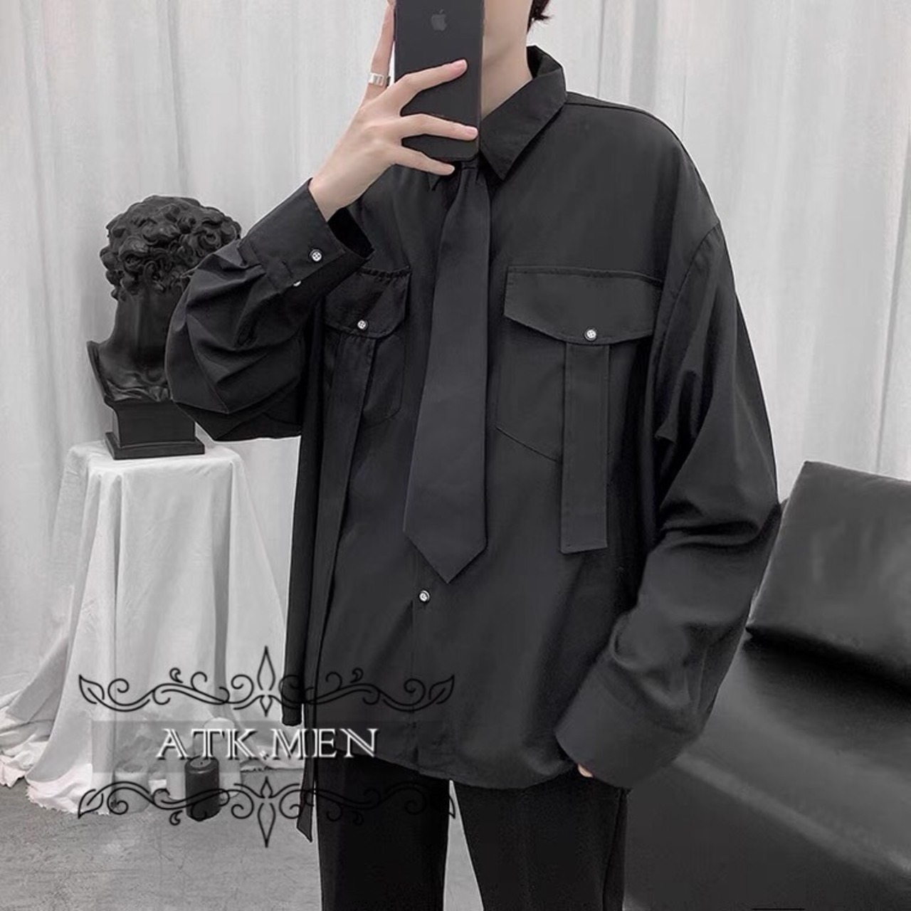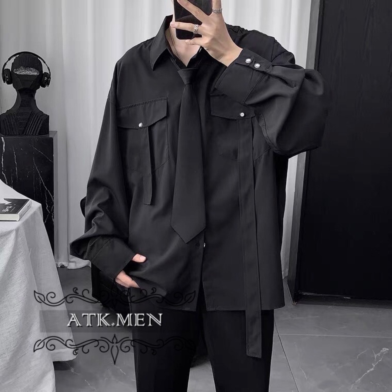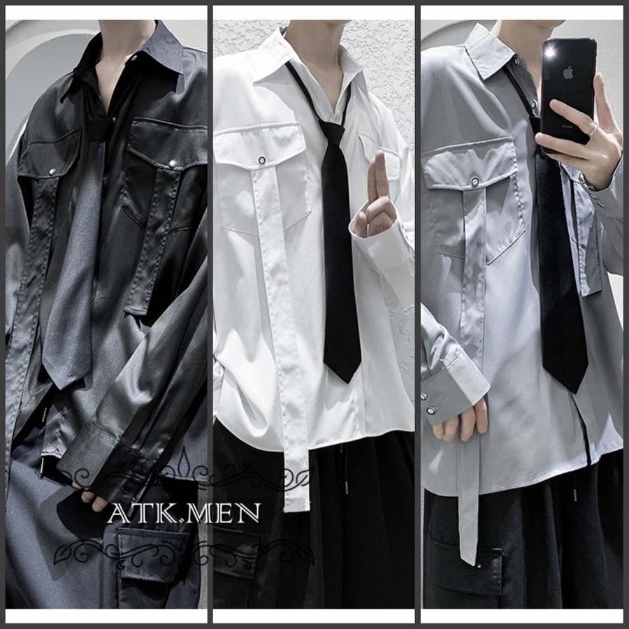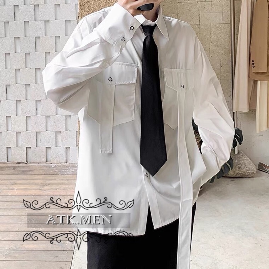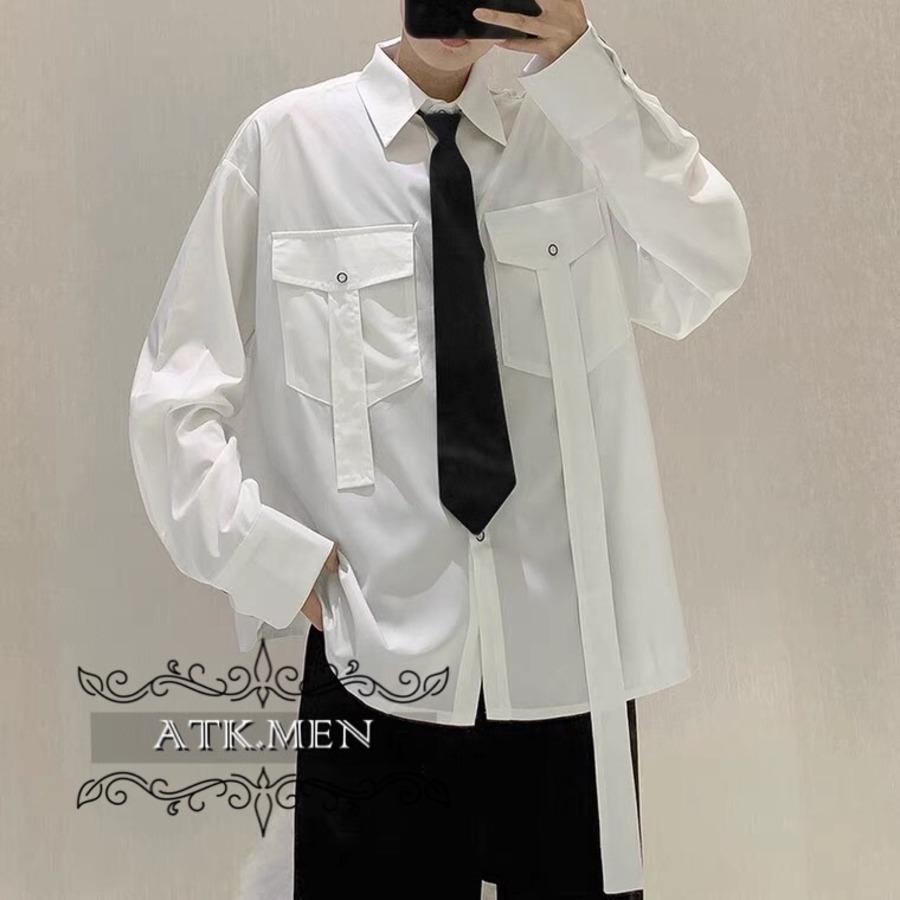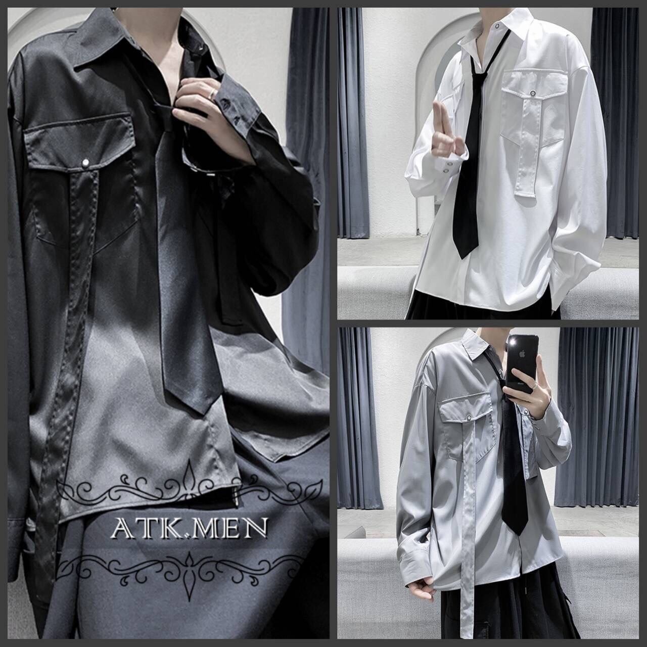 【ATK.MEN】 F112 メンズ 韓国 デザイン カジュアル ゆっとり 長袖 ビジュアル シャツ クール ダンス 演出 ストリート系