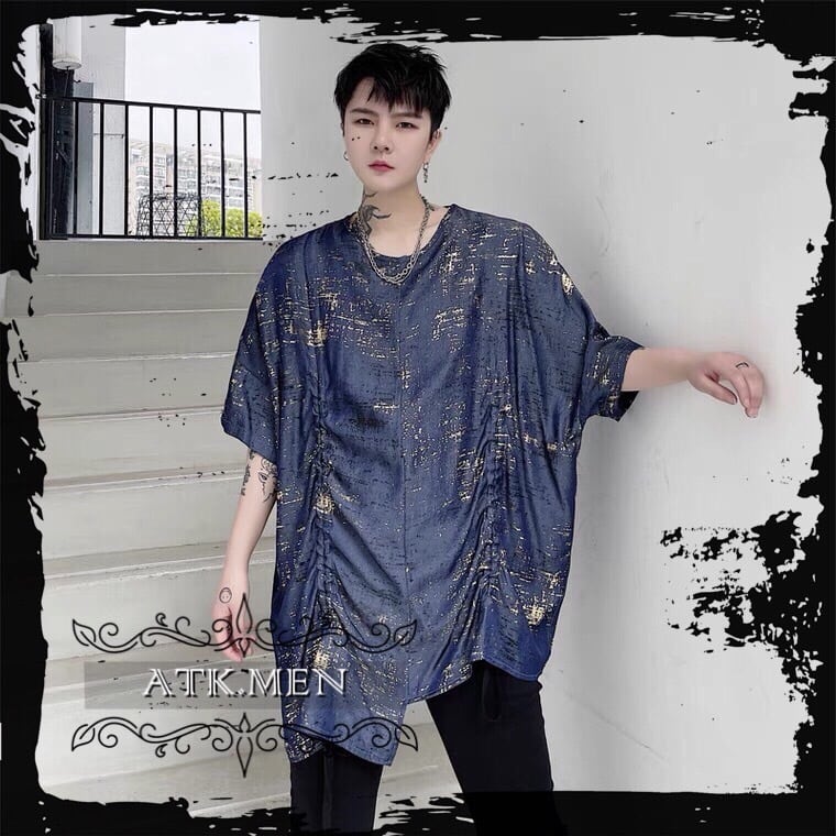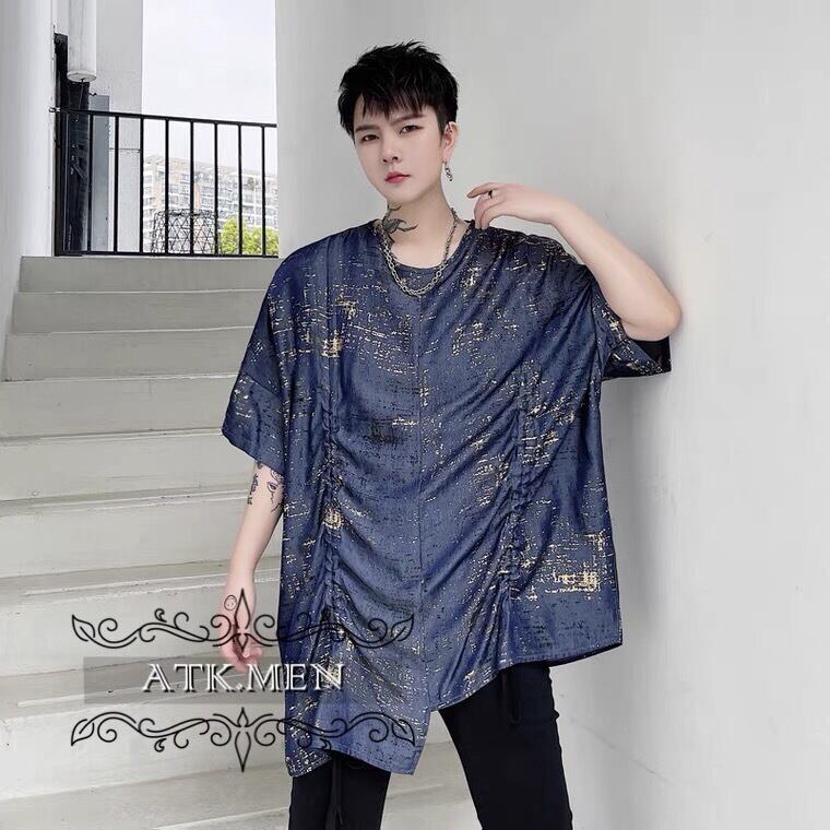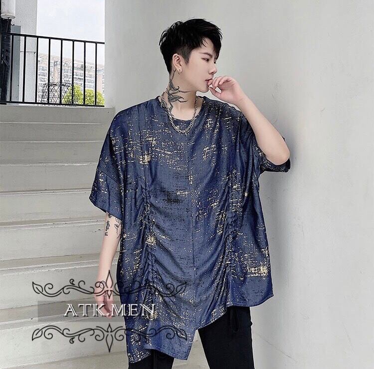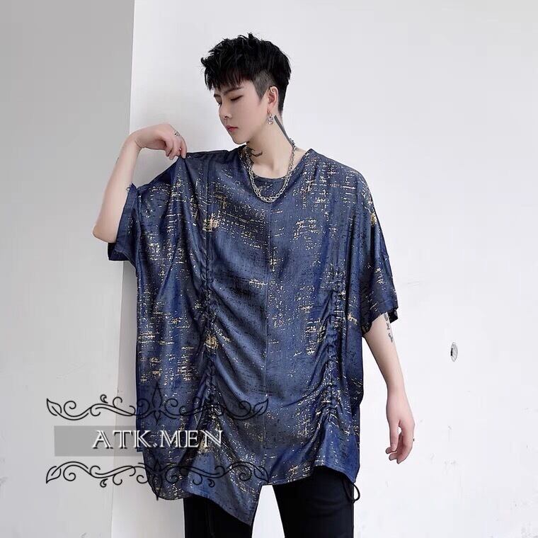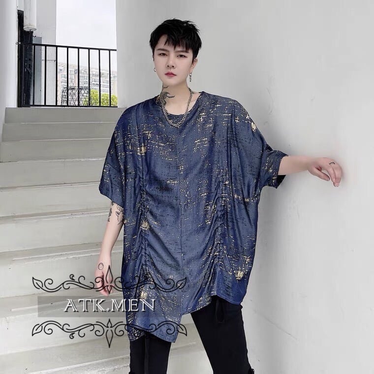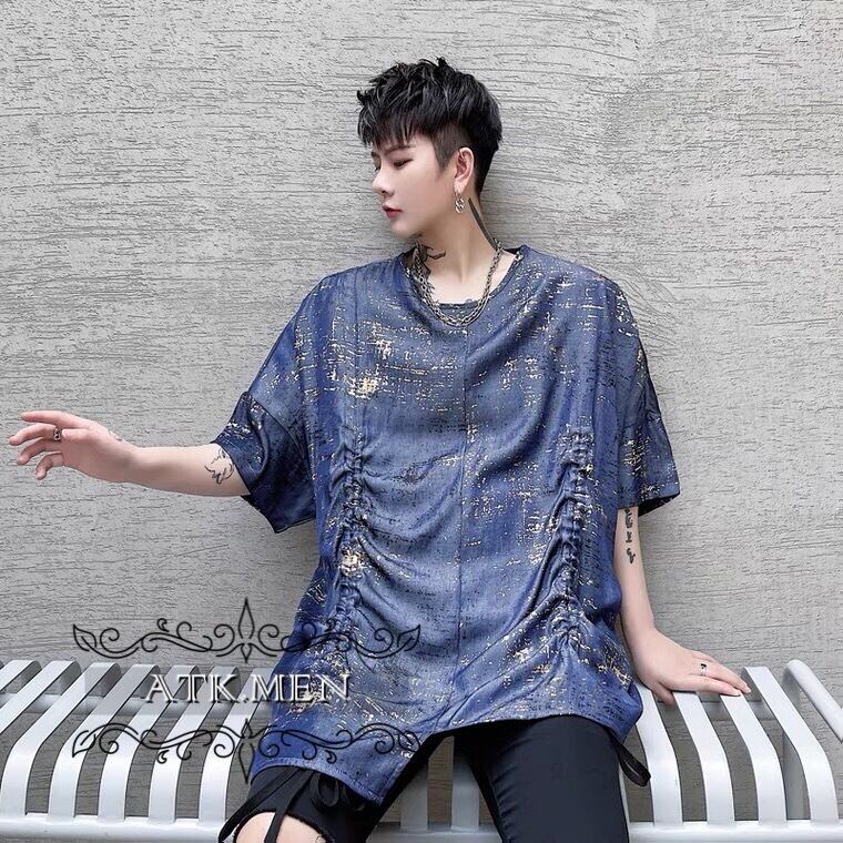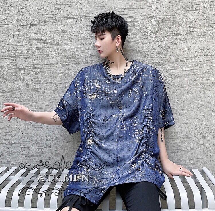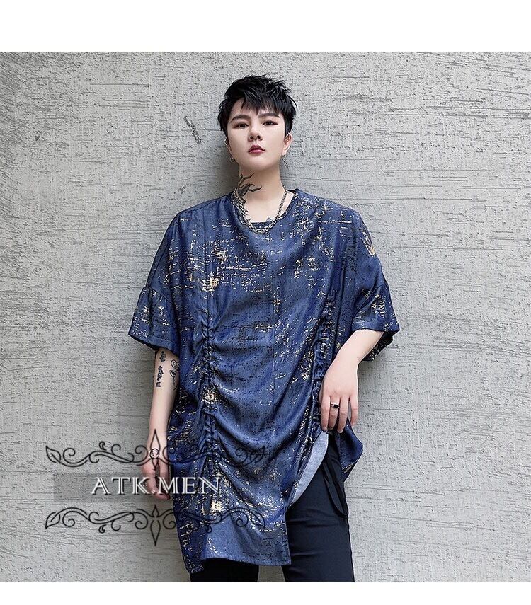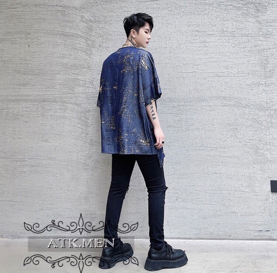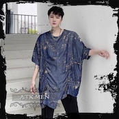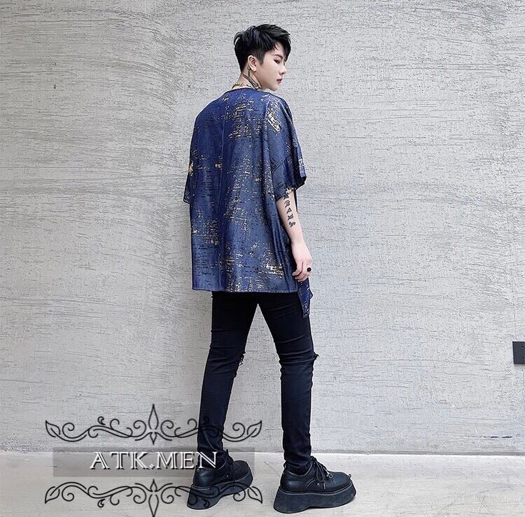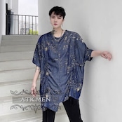 【ATK.MEN】 m2717 派手 ブルー 個性 キラキラ 原宿 渋谷 韓国 シャツ 中袖 オシャレ 美形 ホスト風 メンズ